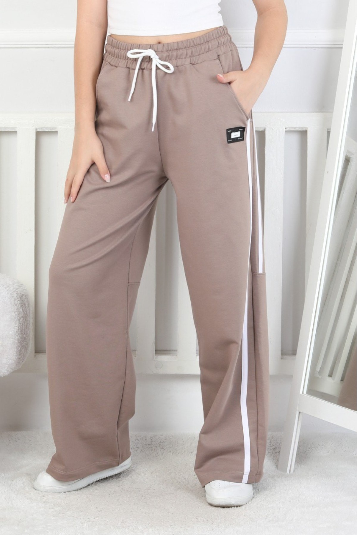 İki İplik Bol Paça Dik Çizgili Kız Çocuk Eşofman Altı