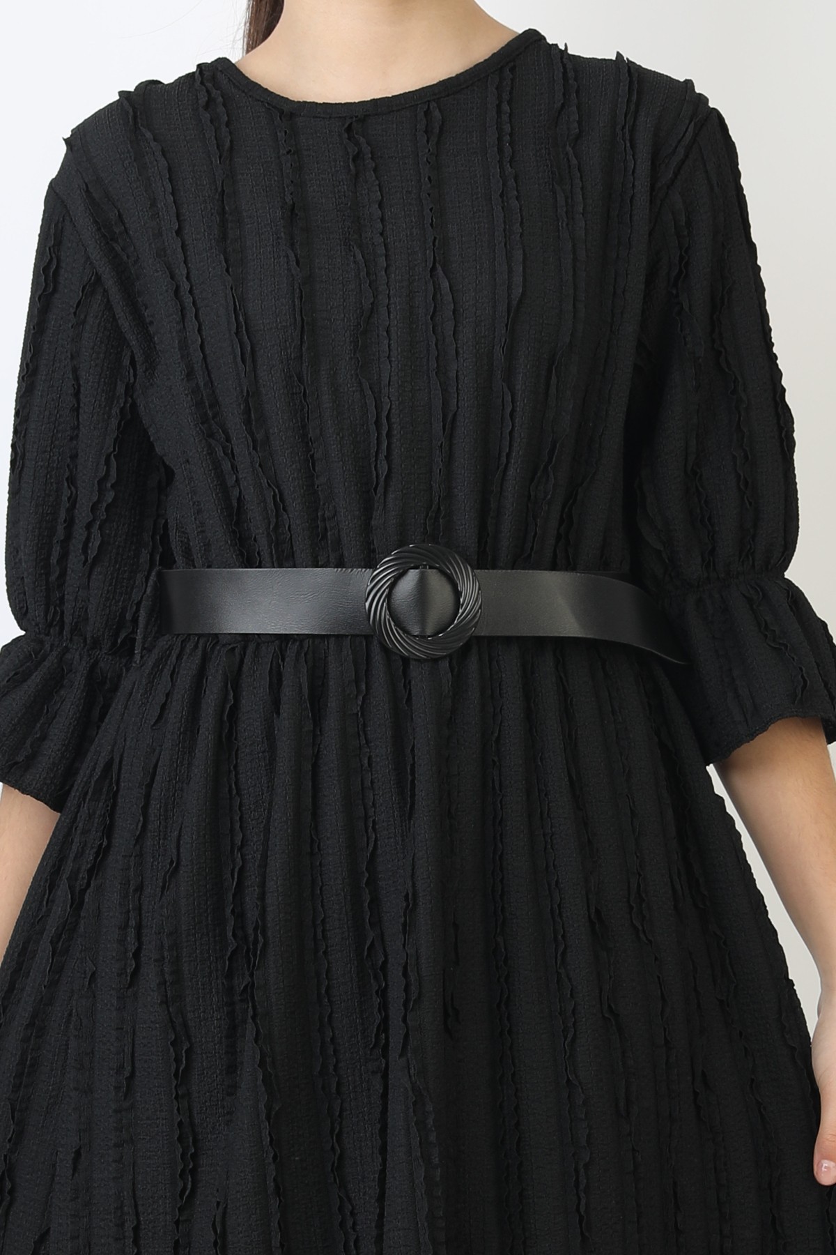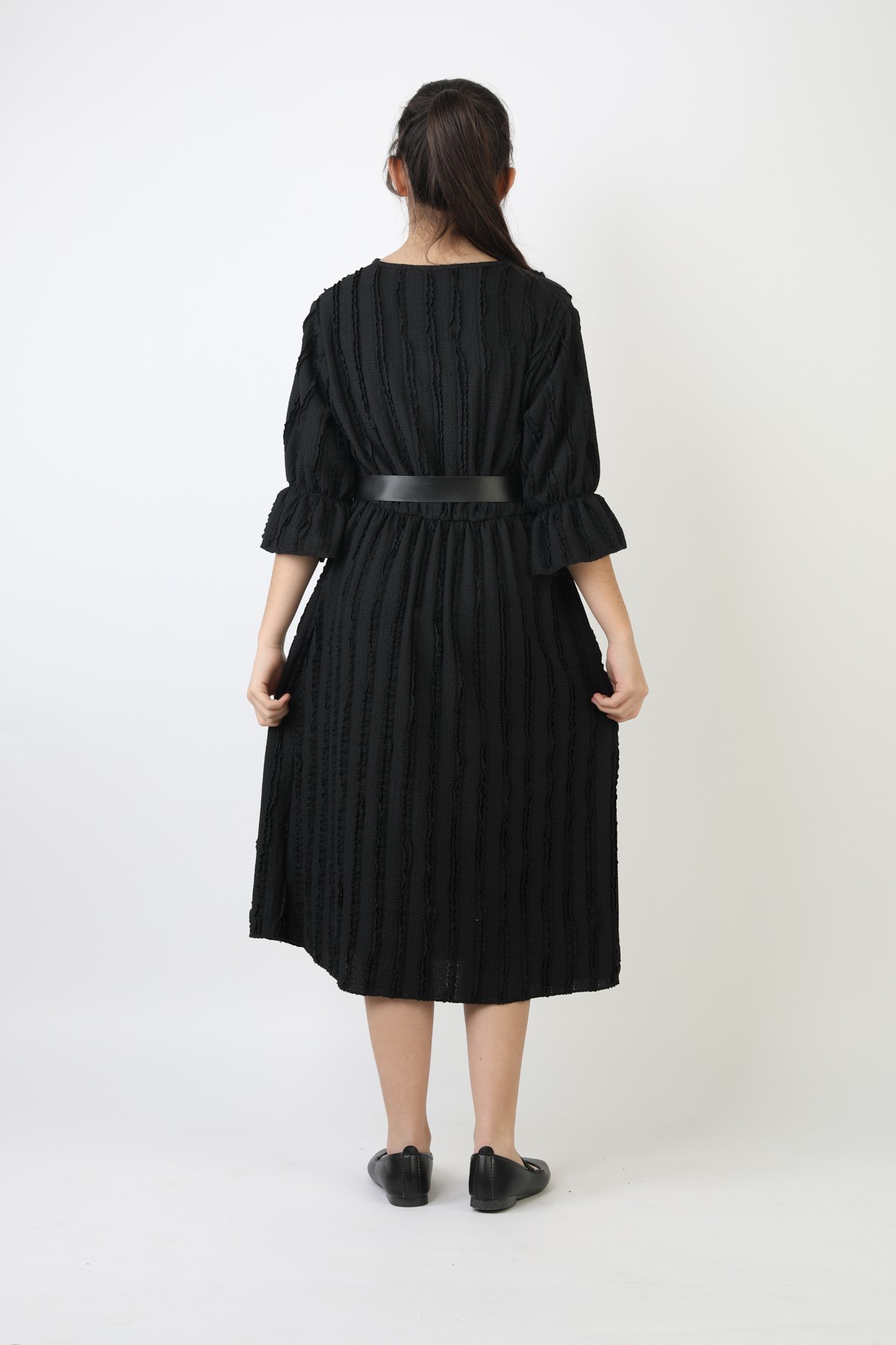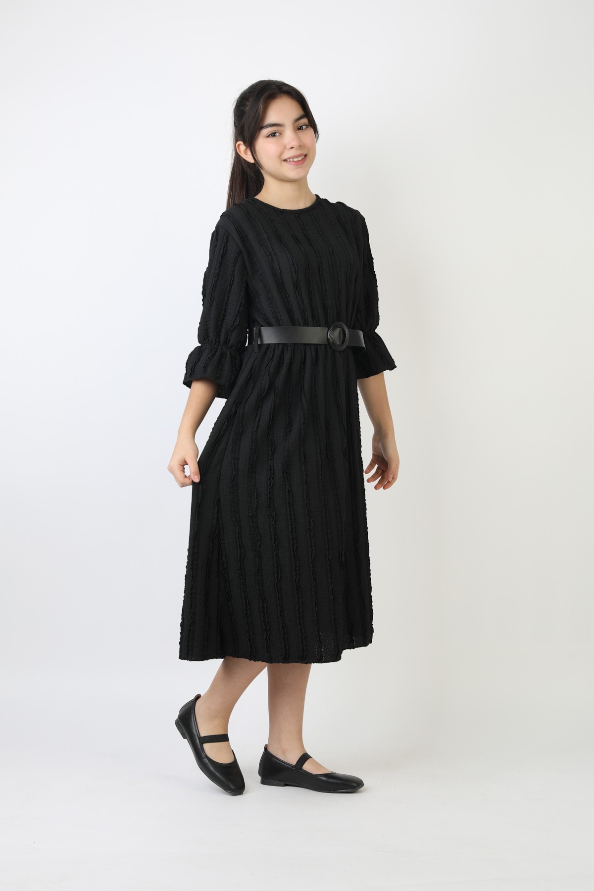 Fırfırlı Bürümcük Kumaş Kız Çocuk Kemerli Günlük Şık ve Rahat Elbise