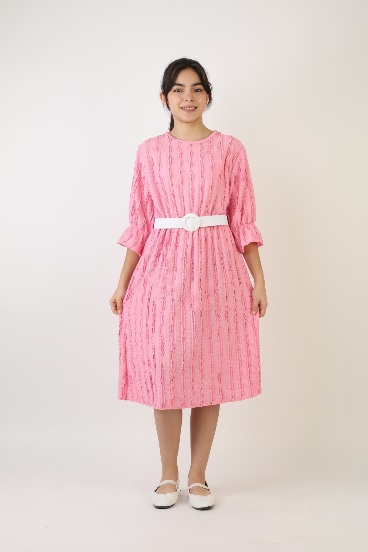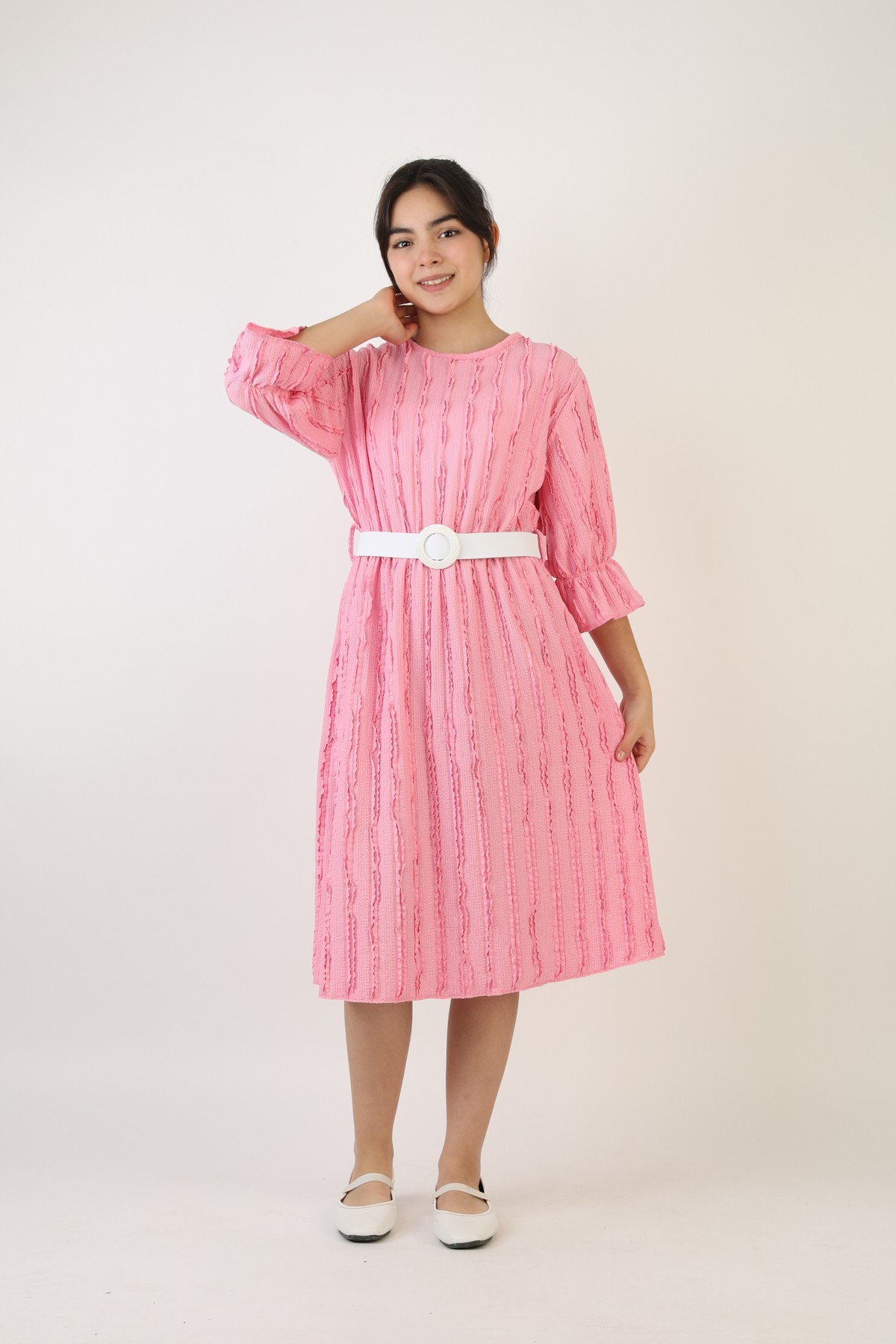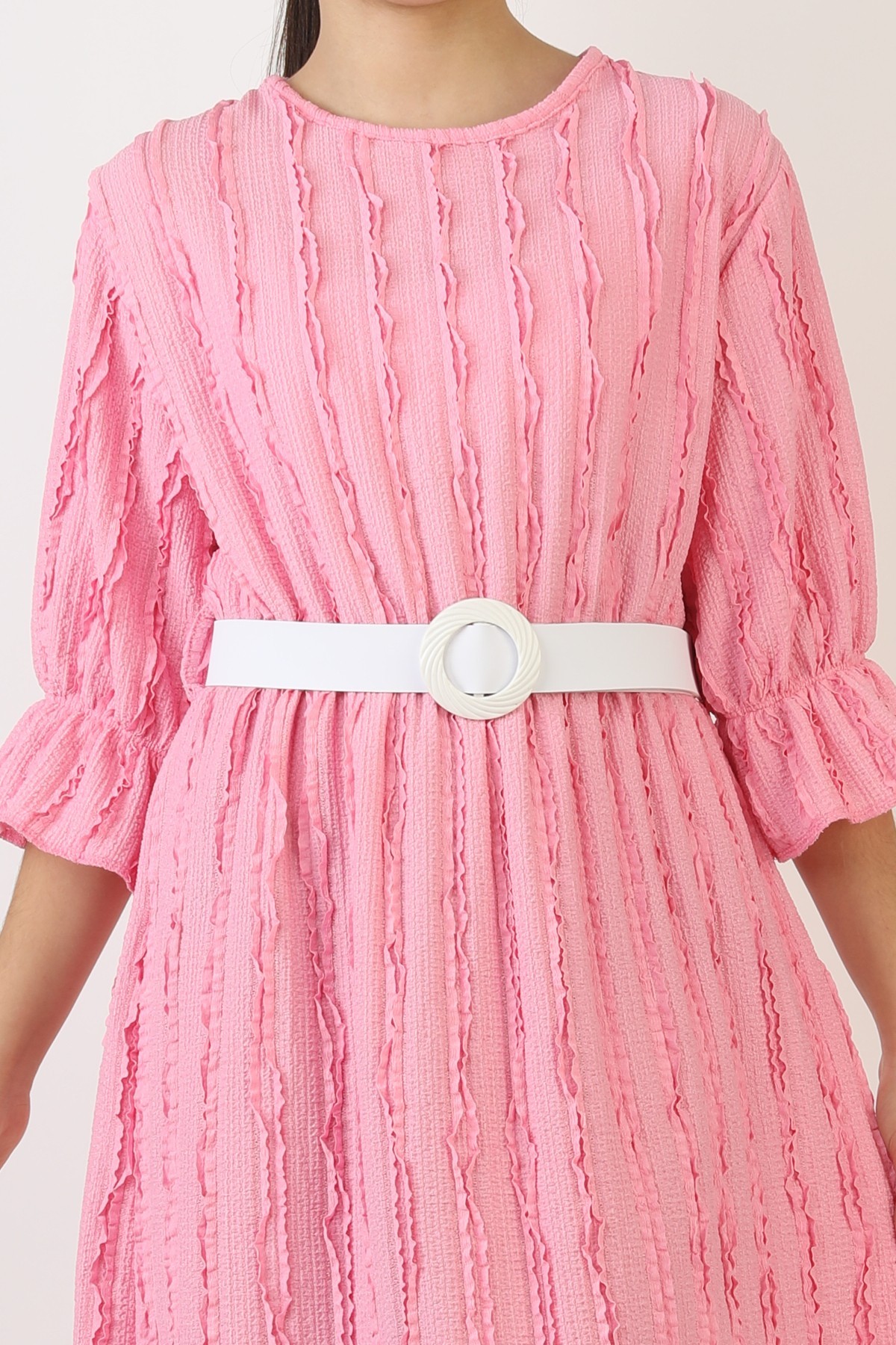 Fırfırlı Bürümcük Kumaş Kız Çocuk Kemerli Günlük Şık ve Rahat Elbise