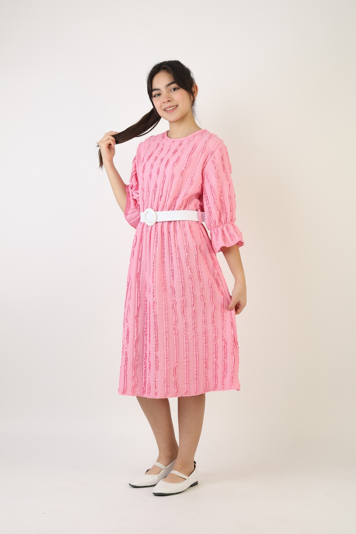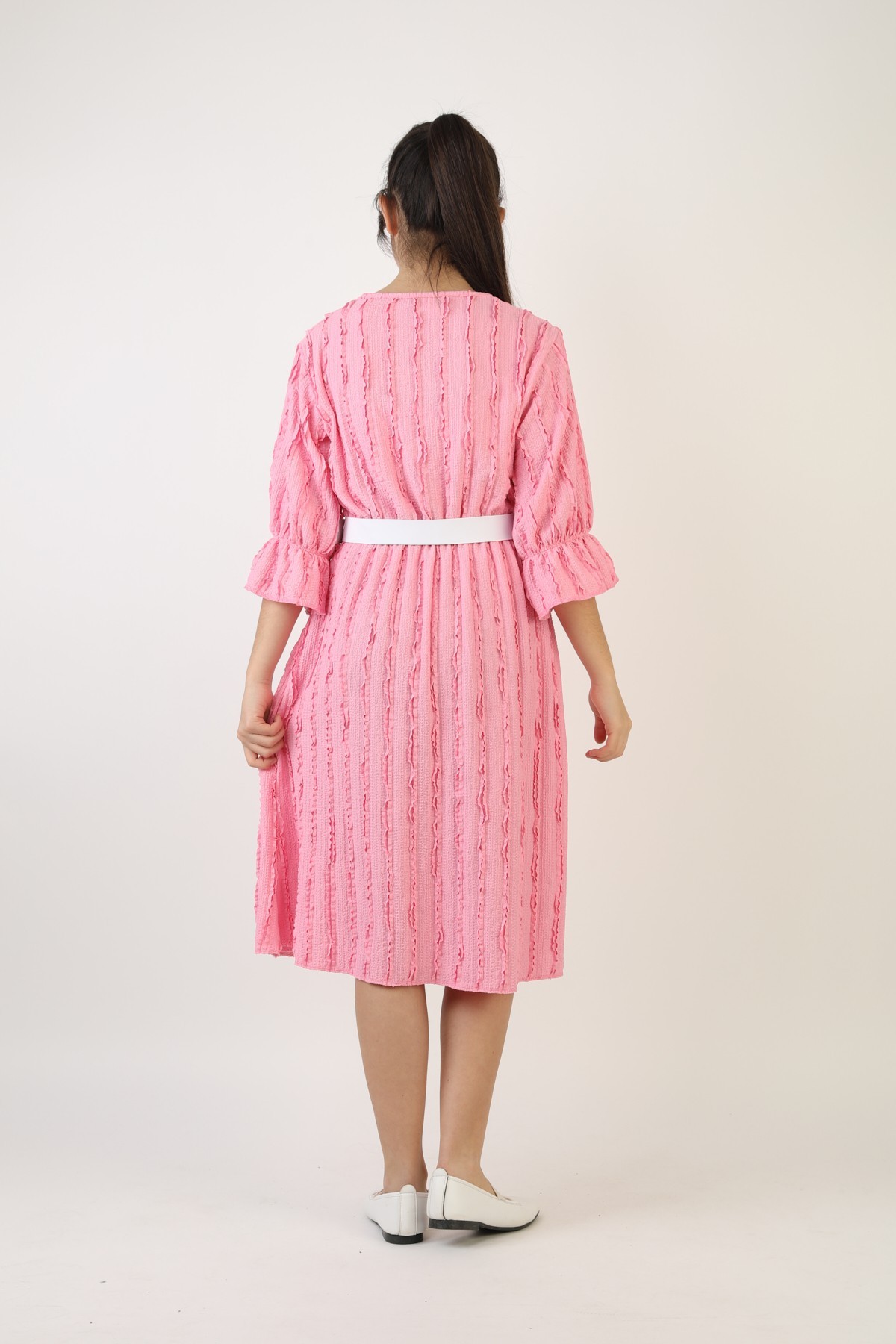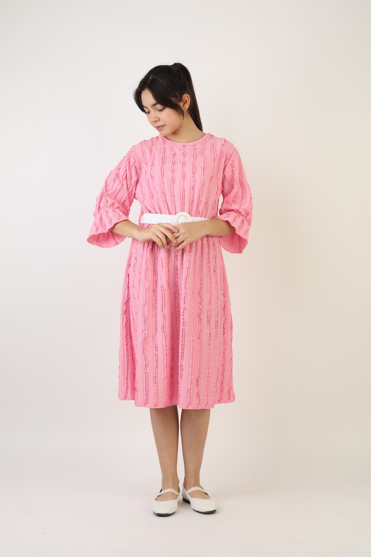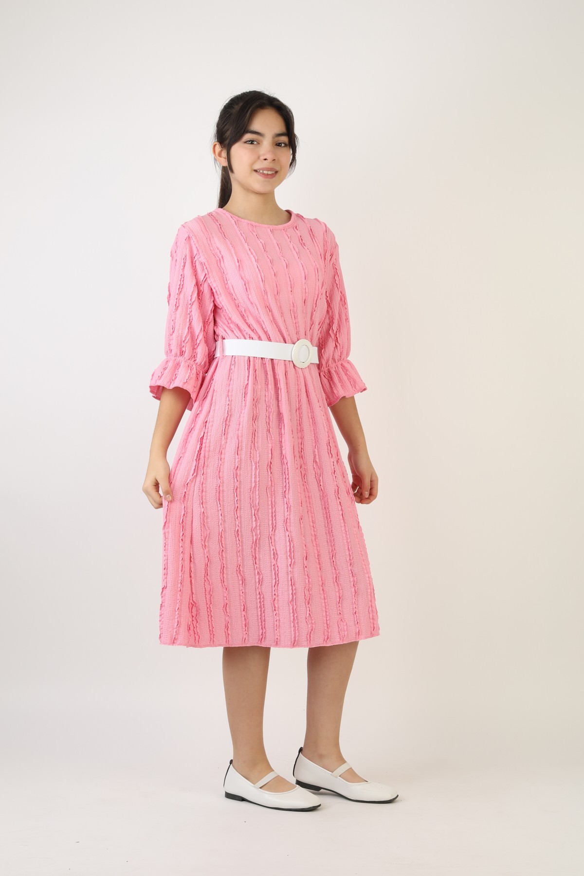 Fırfırlı Bürümcük Kumaş Kız Çocuk Kemerli Günlük Şık ve Rahat Elbise