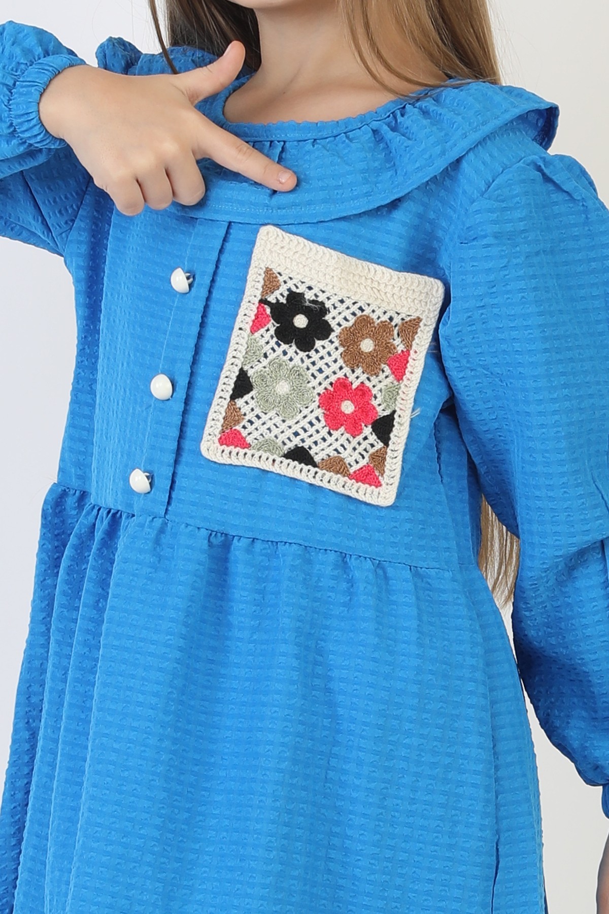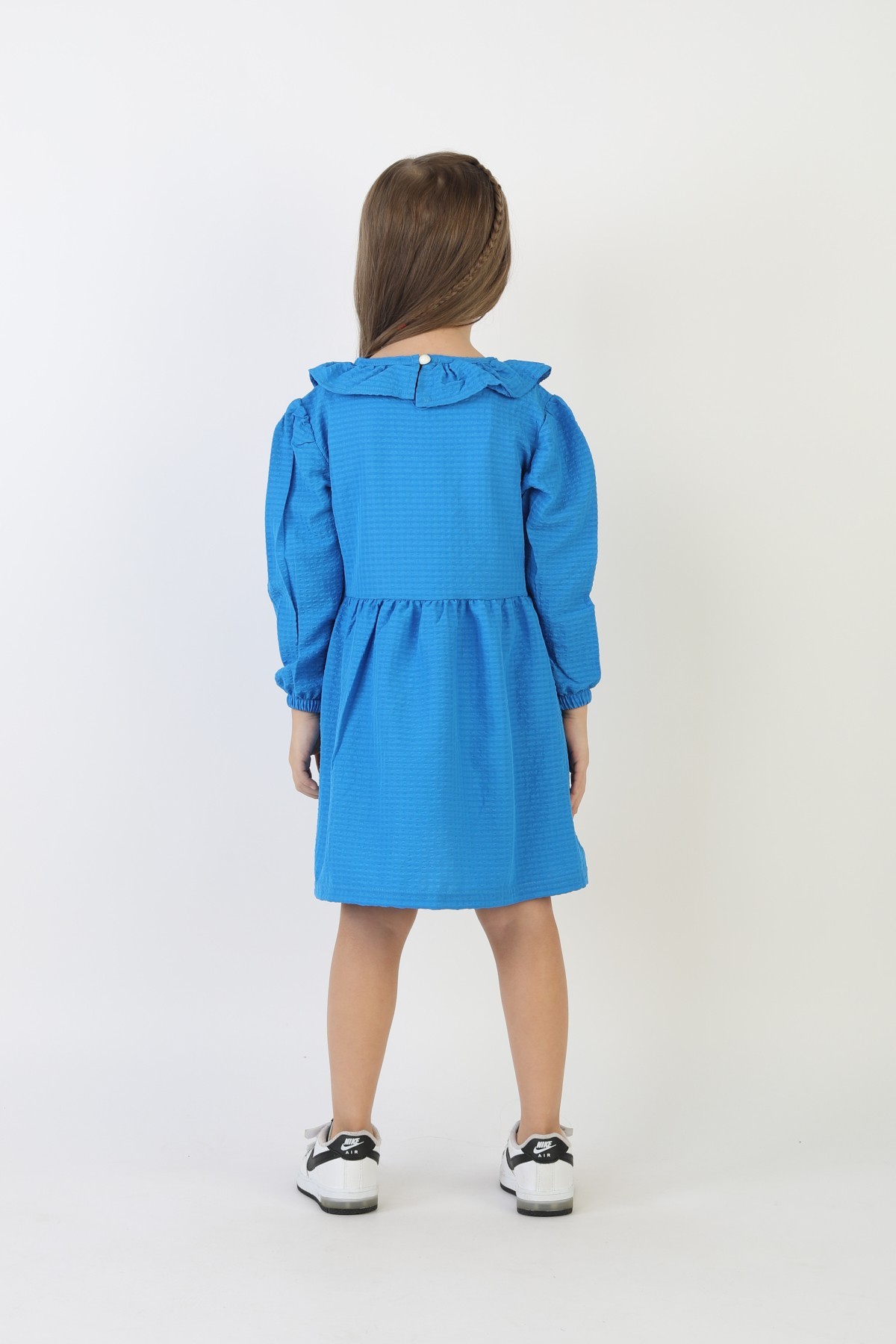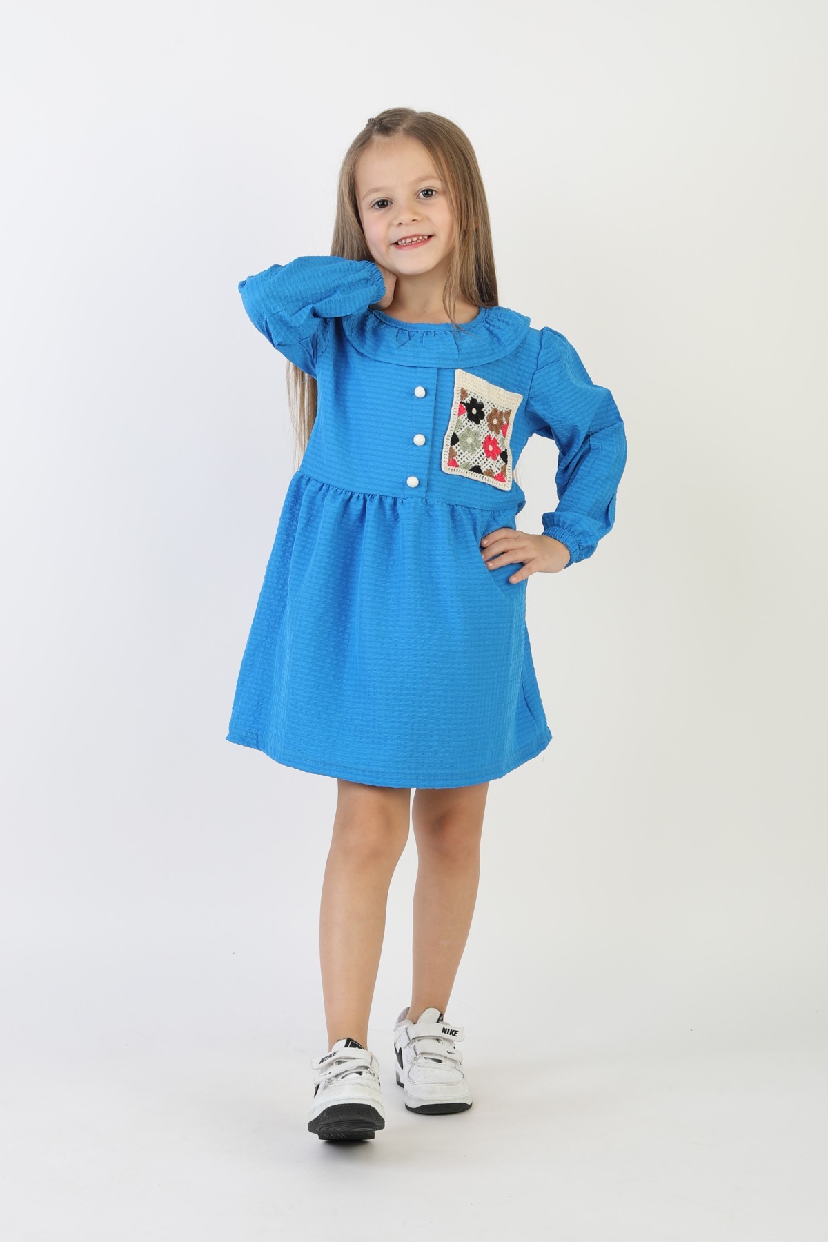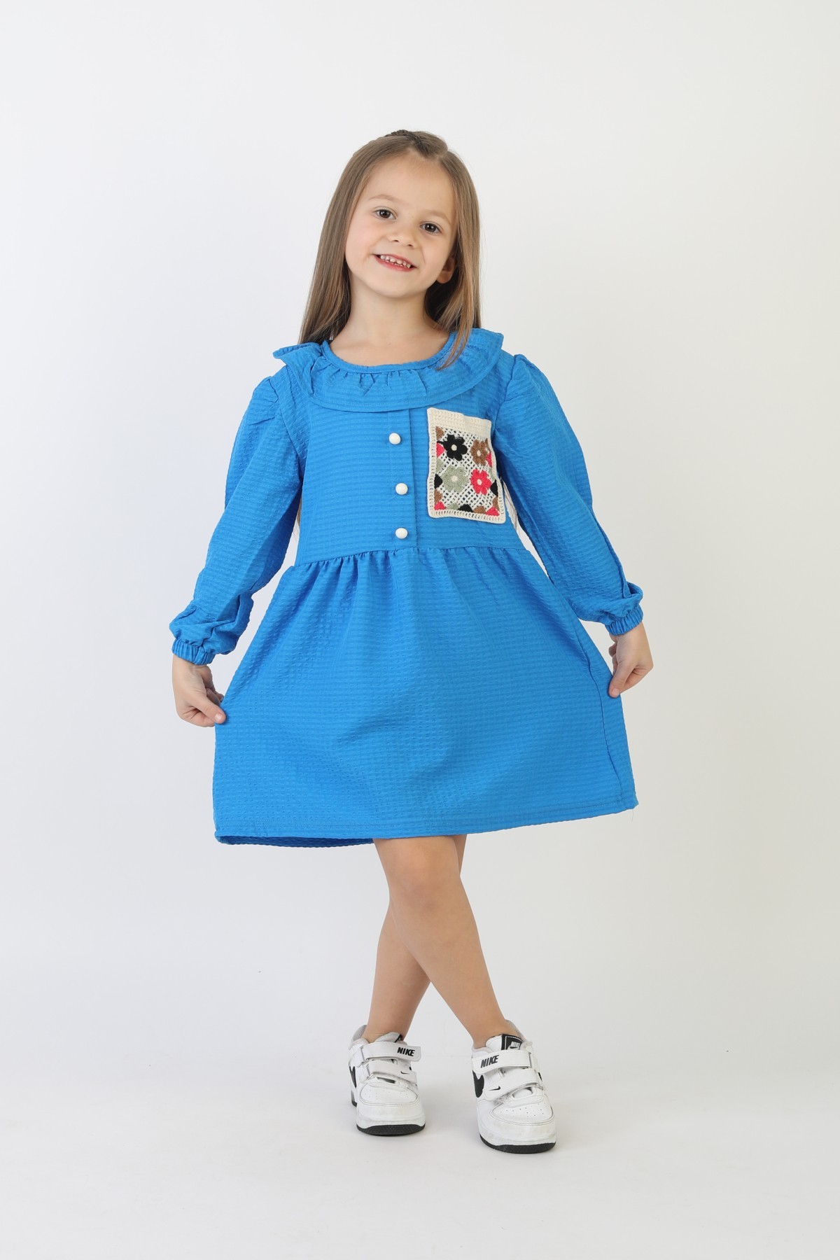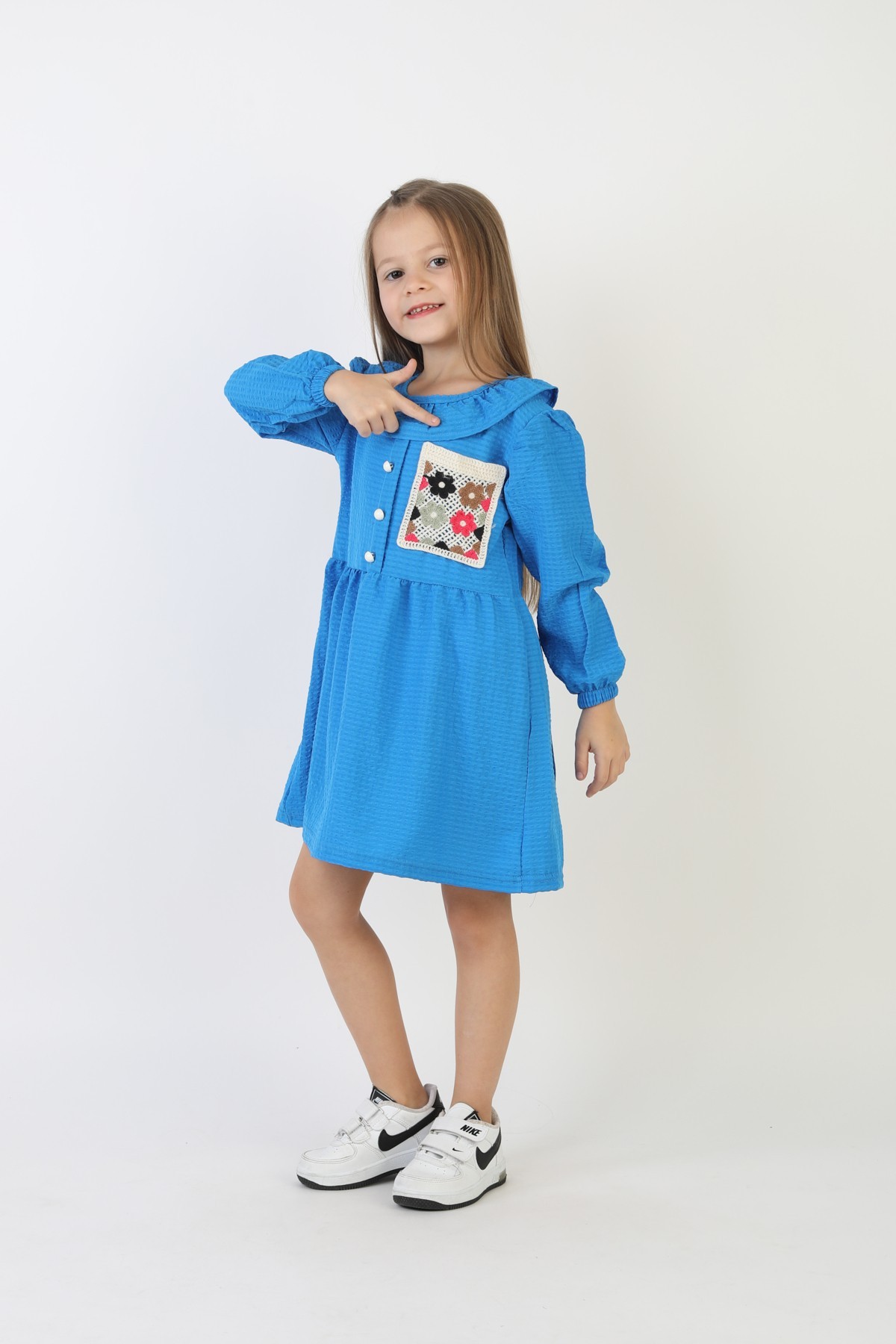 İşlemeli Gofre Kumaş Kız Çocuk Günlük Şık Rahat Ve Trend Elbise