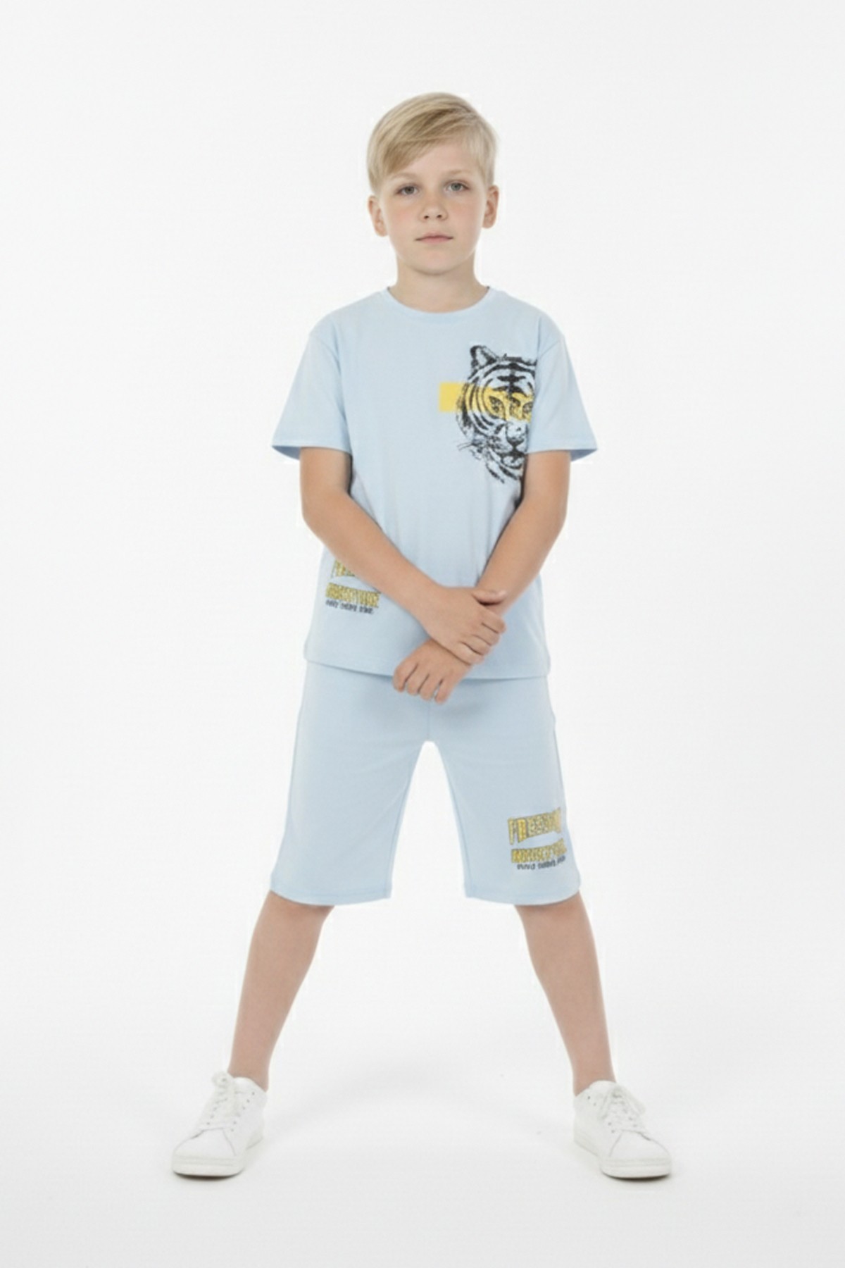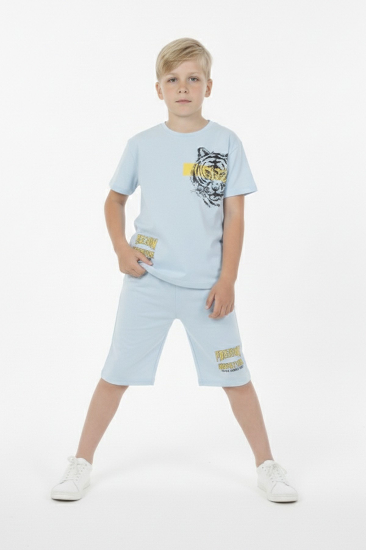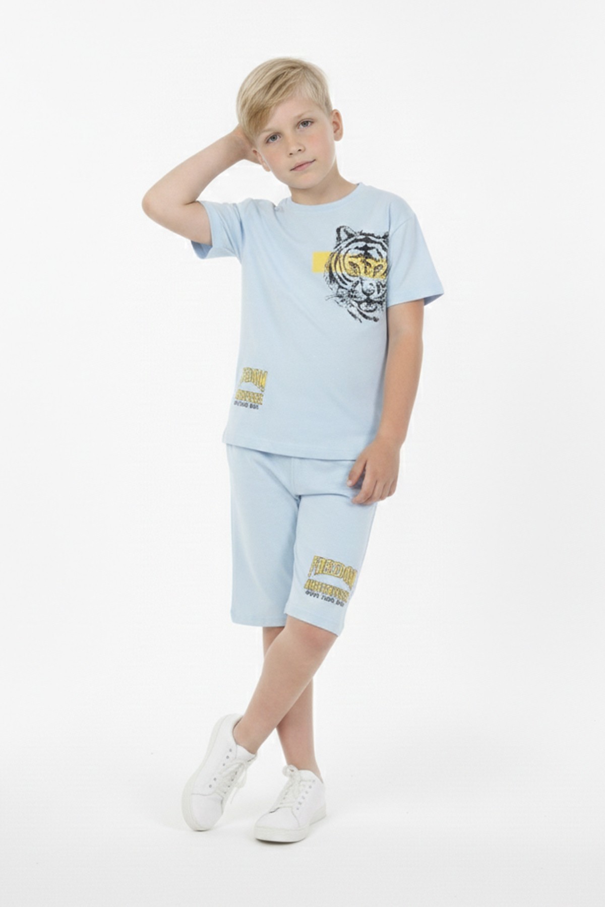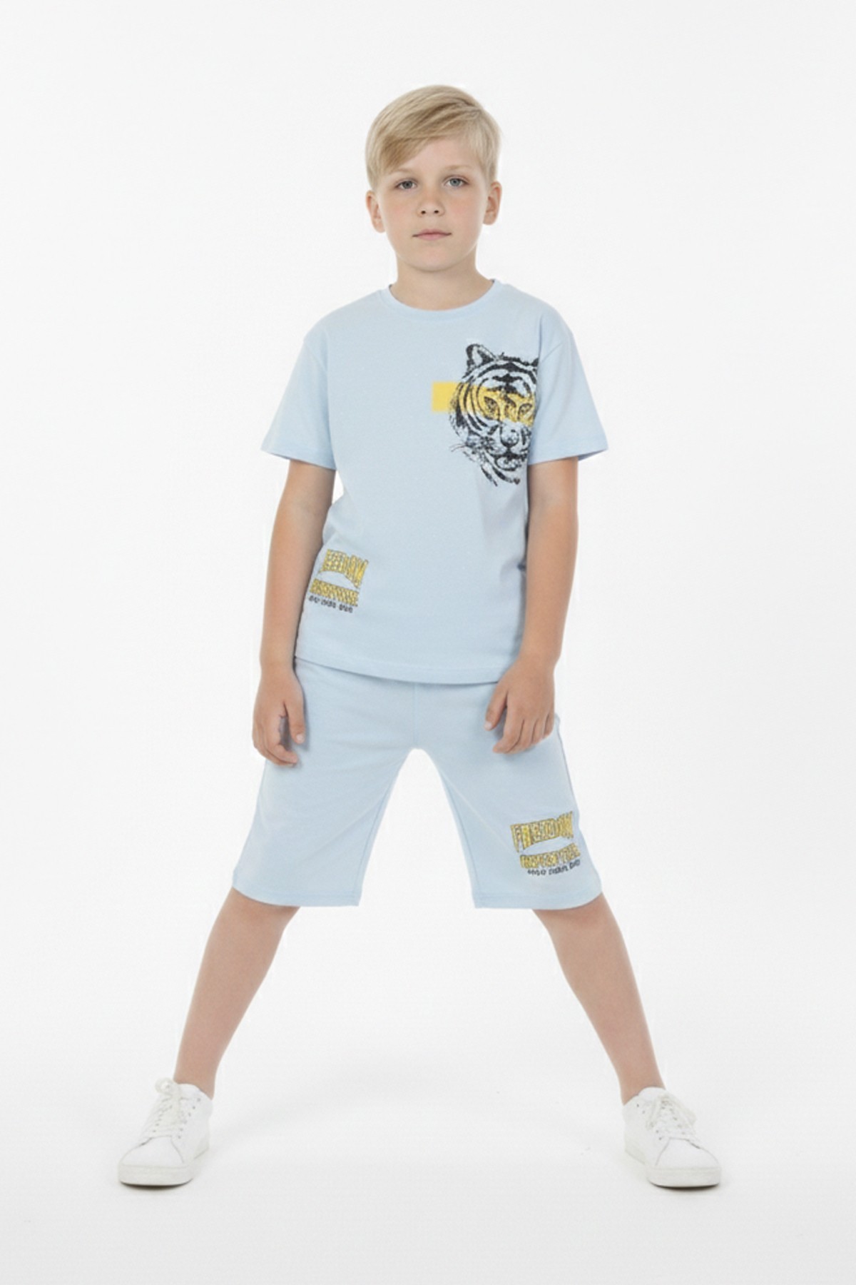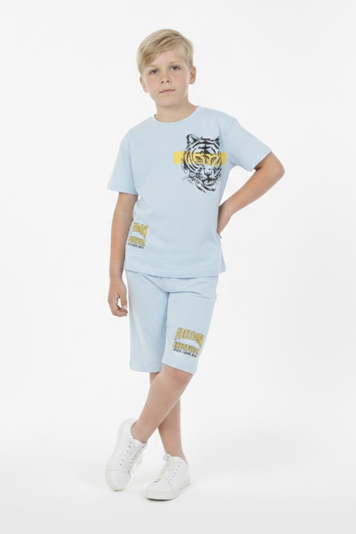 Erkek Çocuk Baskılı %100 Pamuk Süprem Kumaş Reaktif Boyama Şortlu Takım