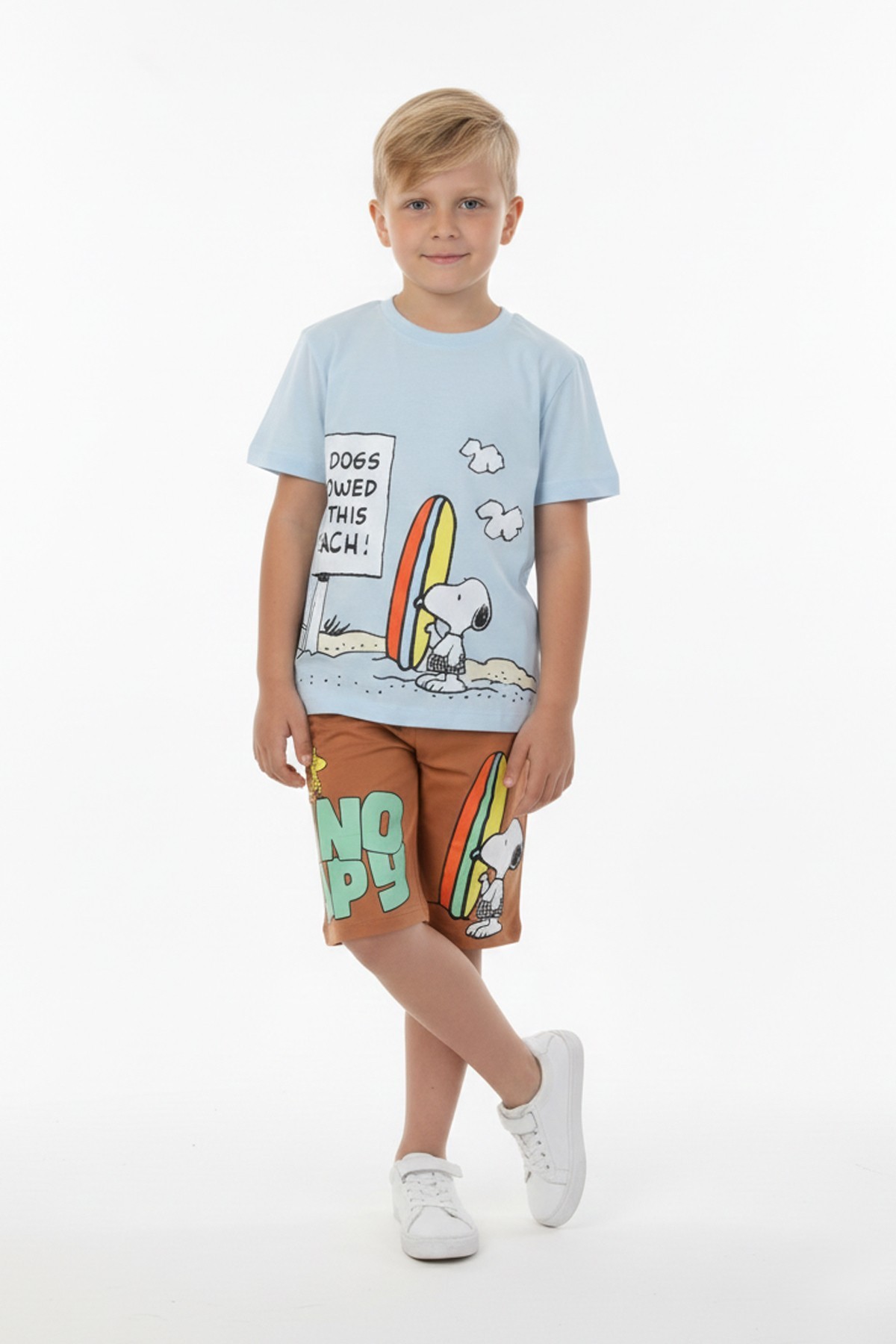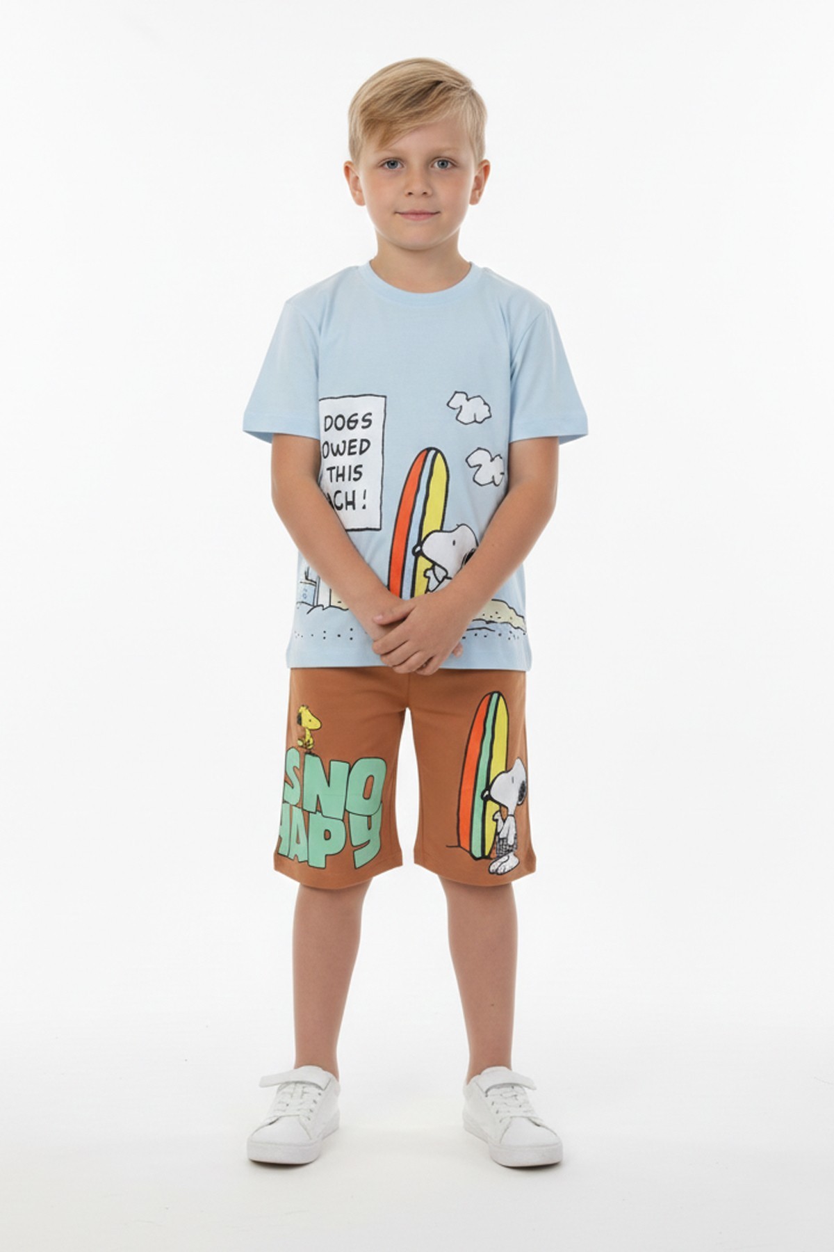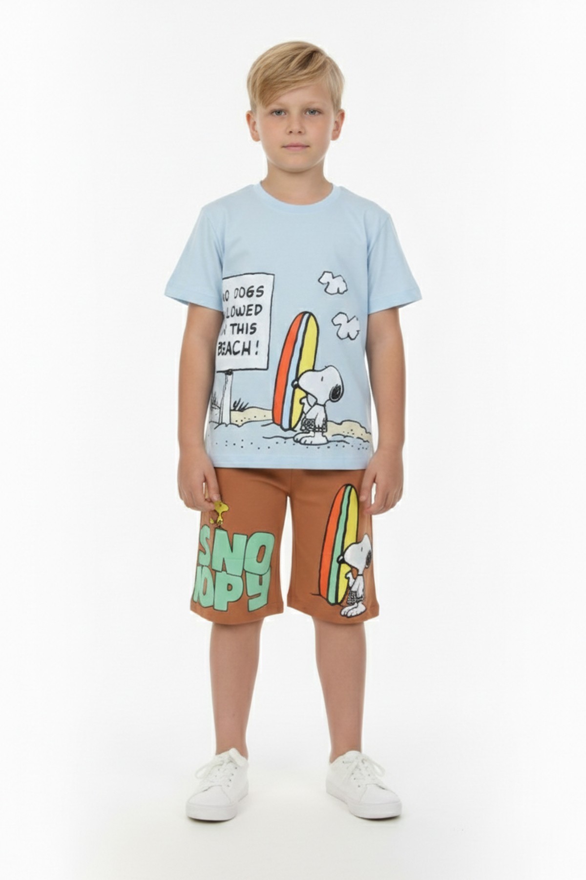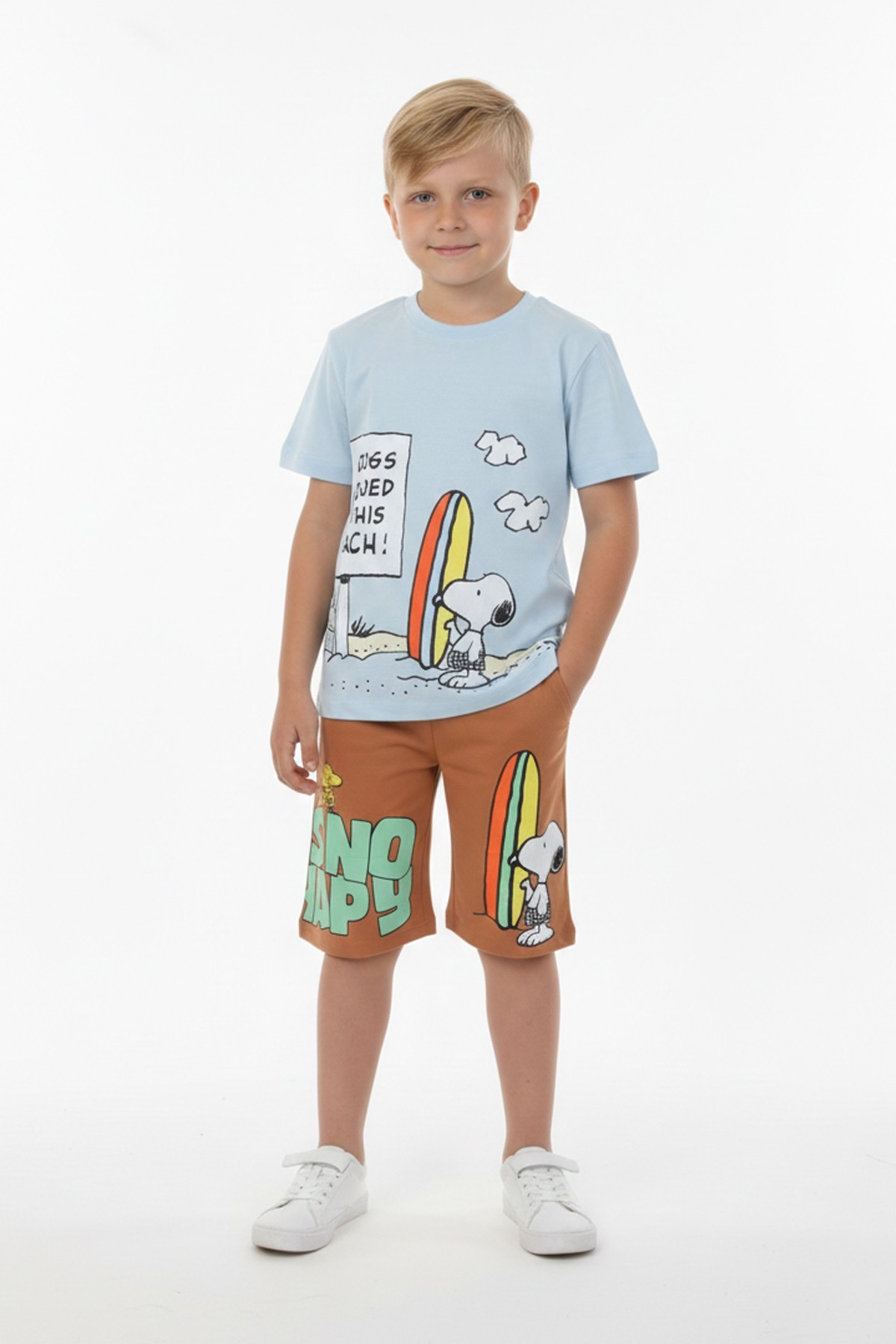Erkek Çocuk Baskılı %100 Pamuk Süprem Kumaş Reaktif Boyama Sörf Temalı Şortlu Takım