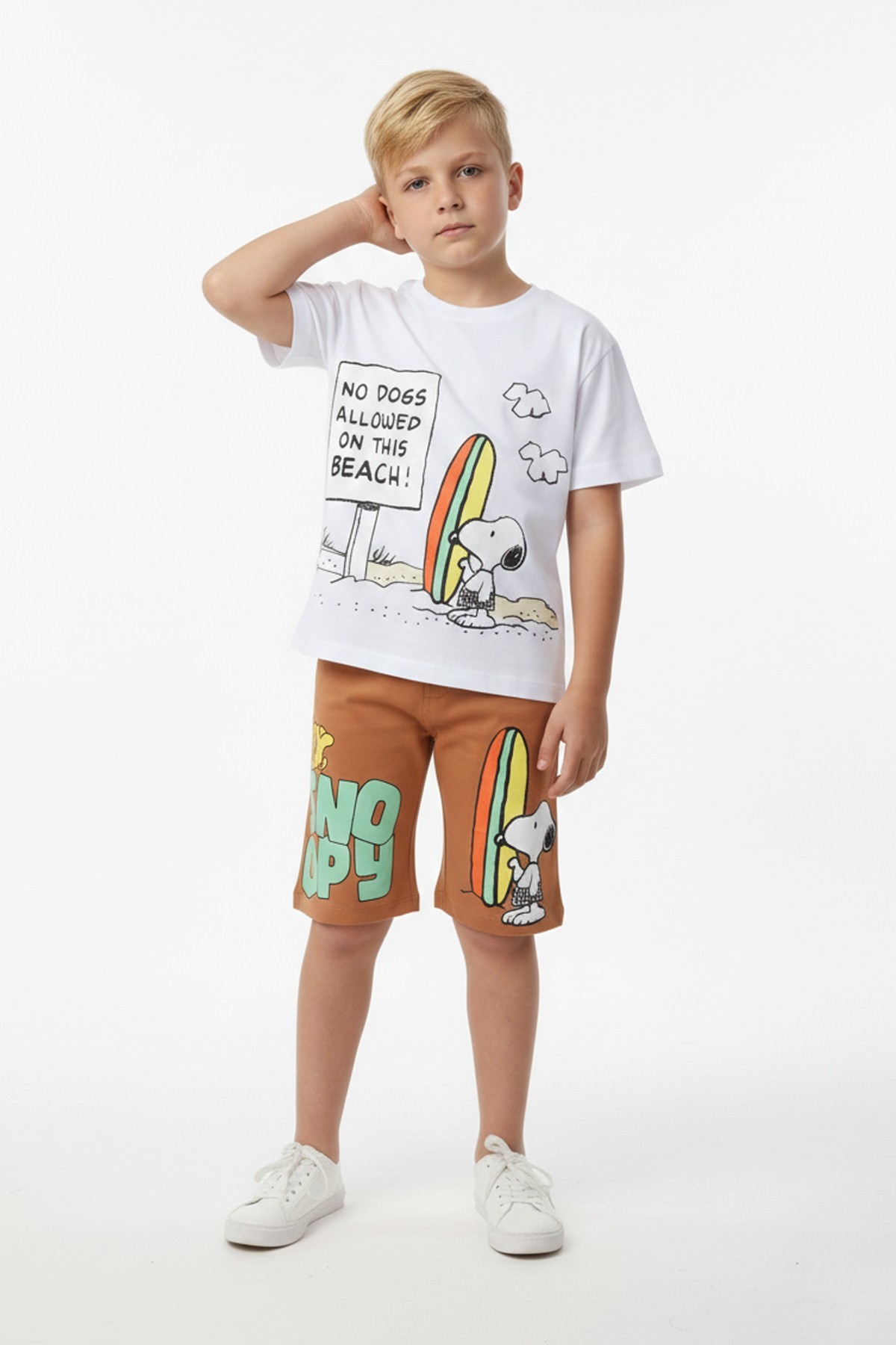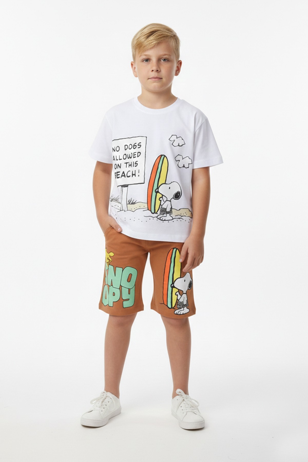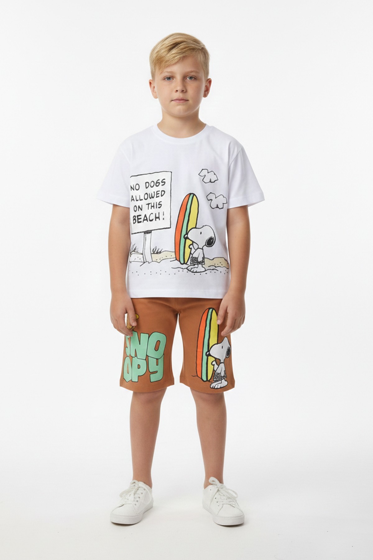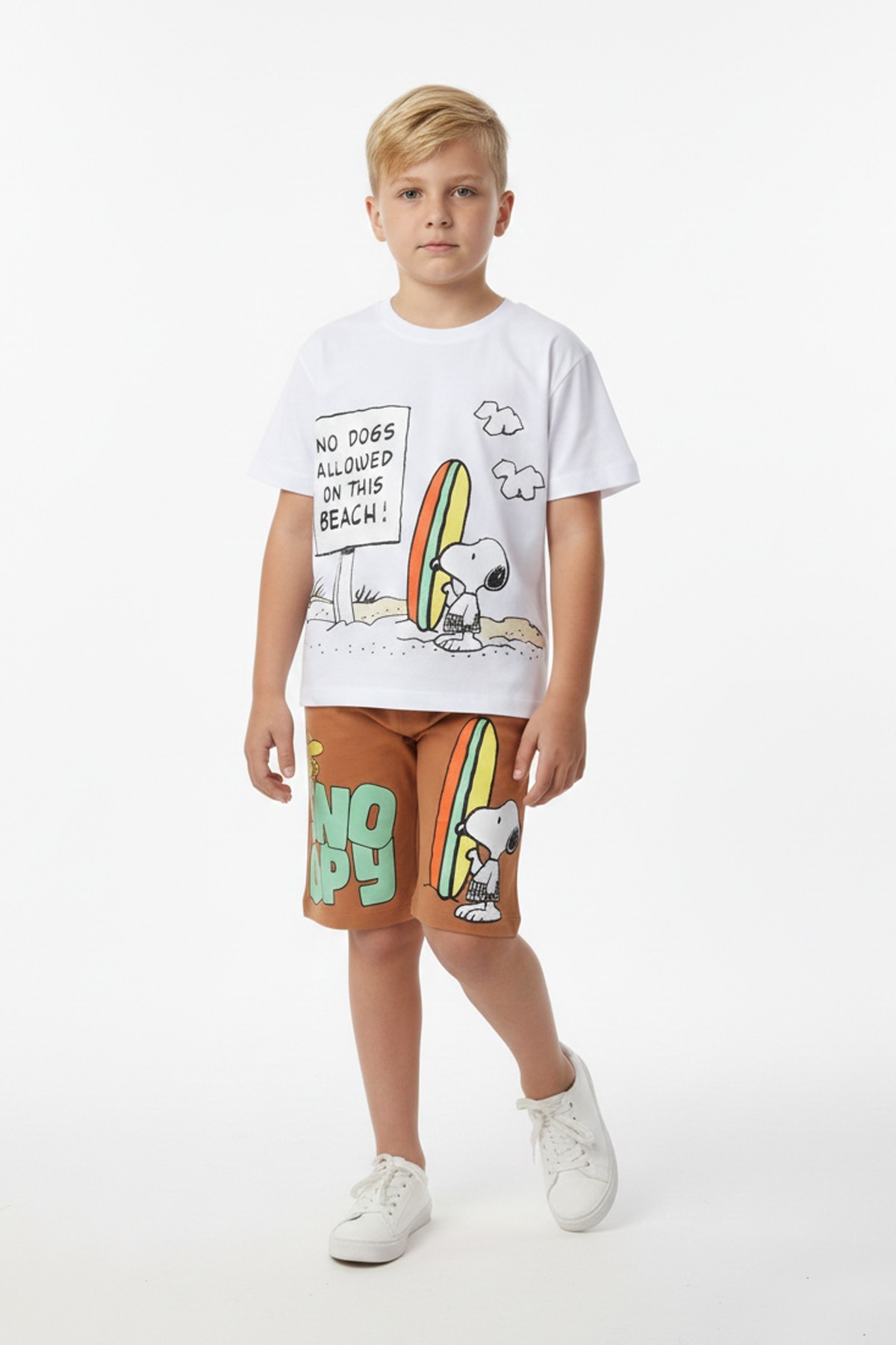 Erkek Çocuk Baskılı %100 Pamuk Süprem Kumaş Reaktif Boyama Sörf Temalı Şortlu Takım