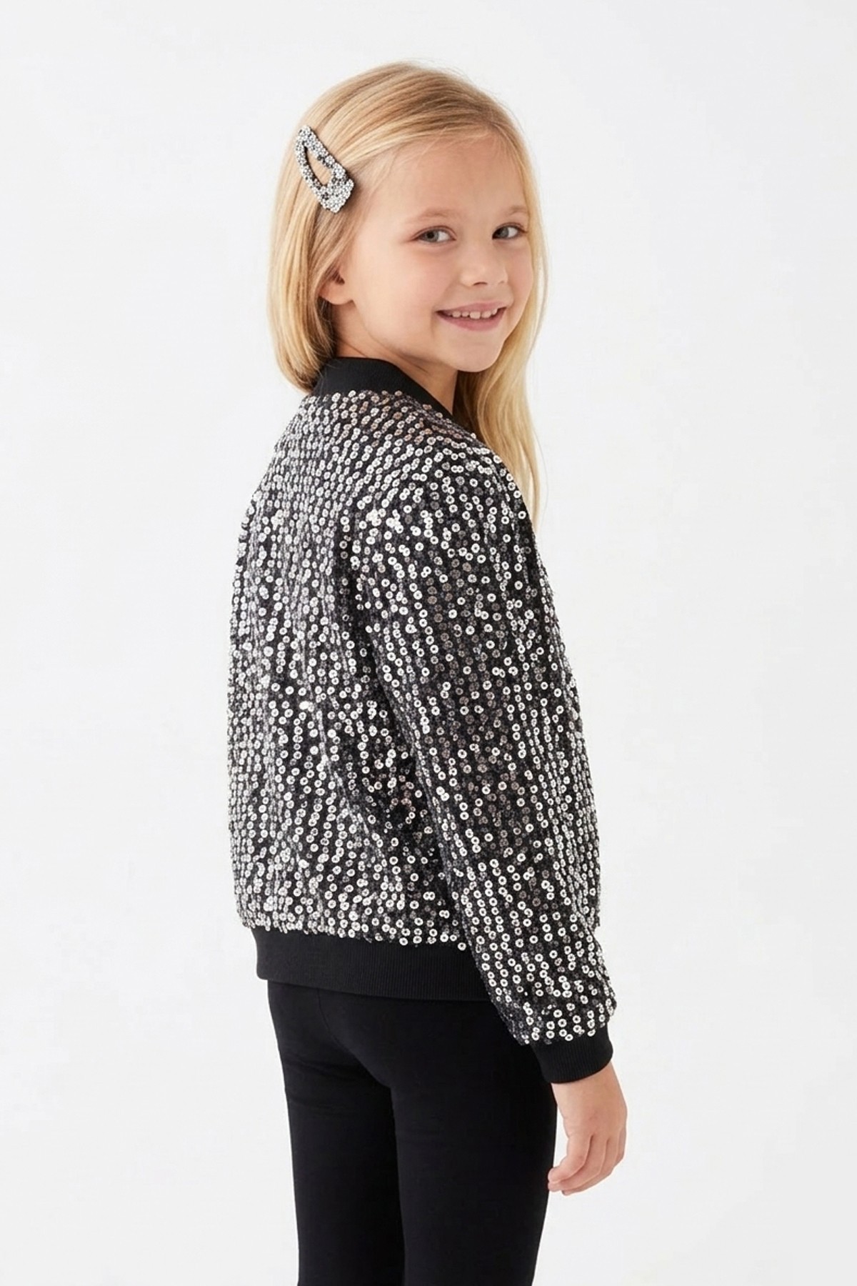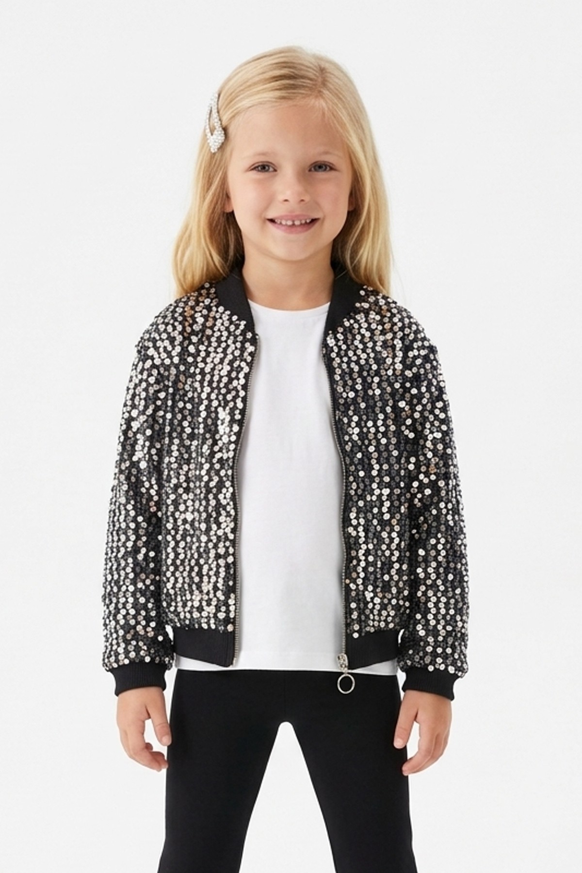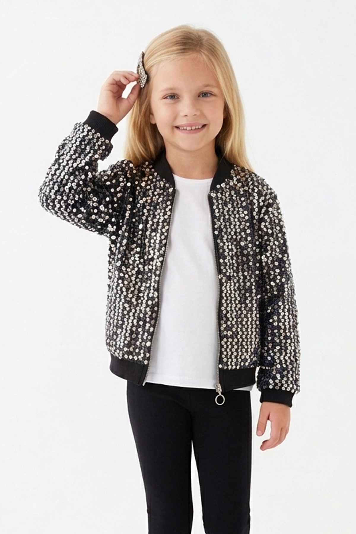 Kız Çocuk Payetli Fermuarlı Bomber Şık Ceket