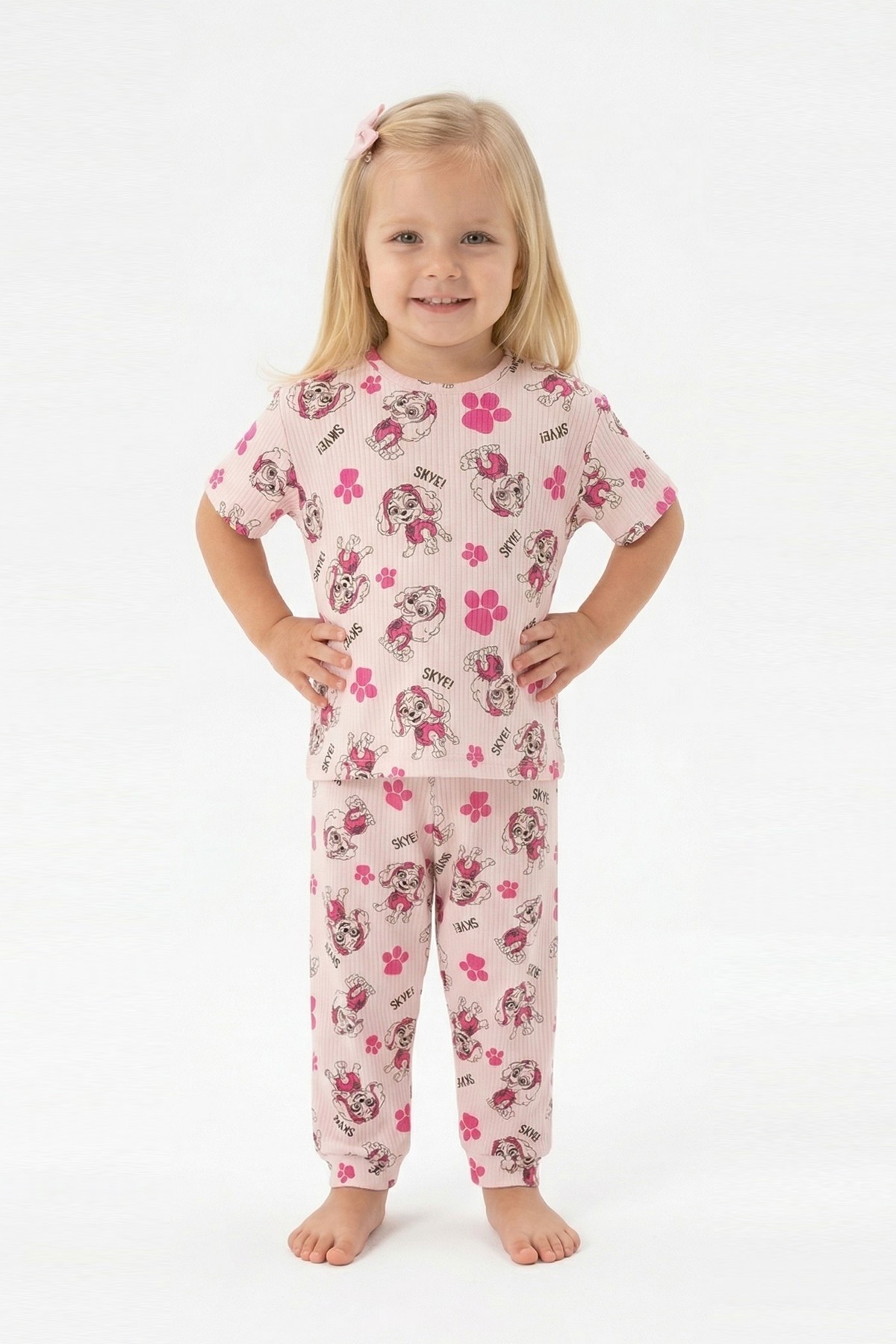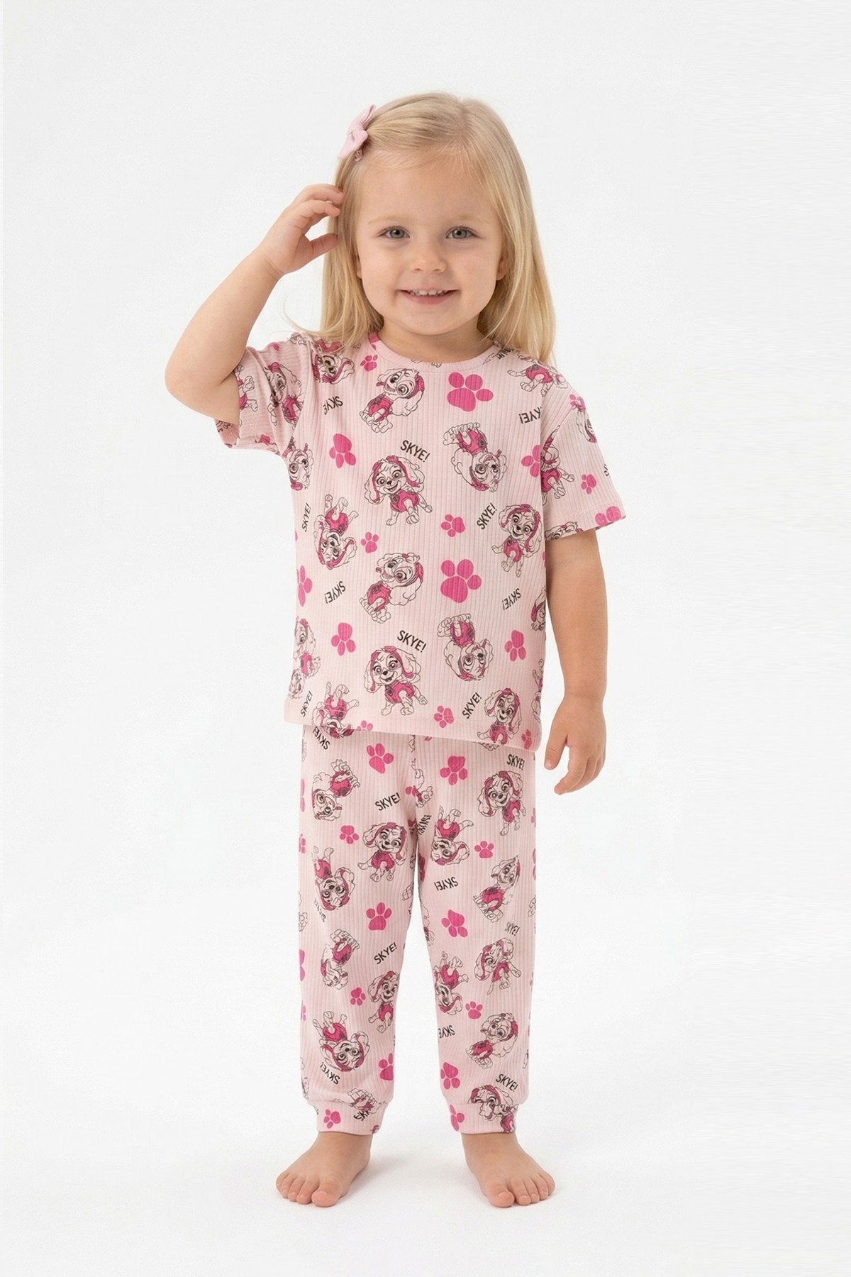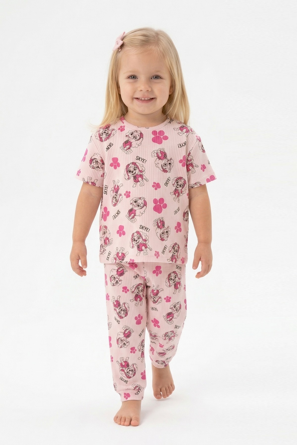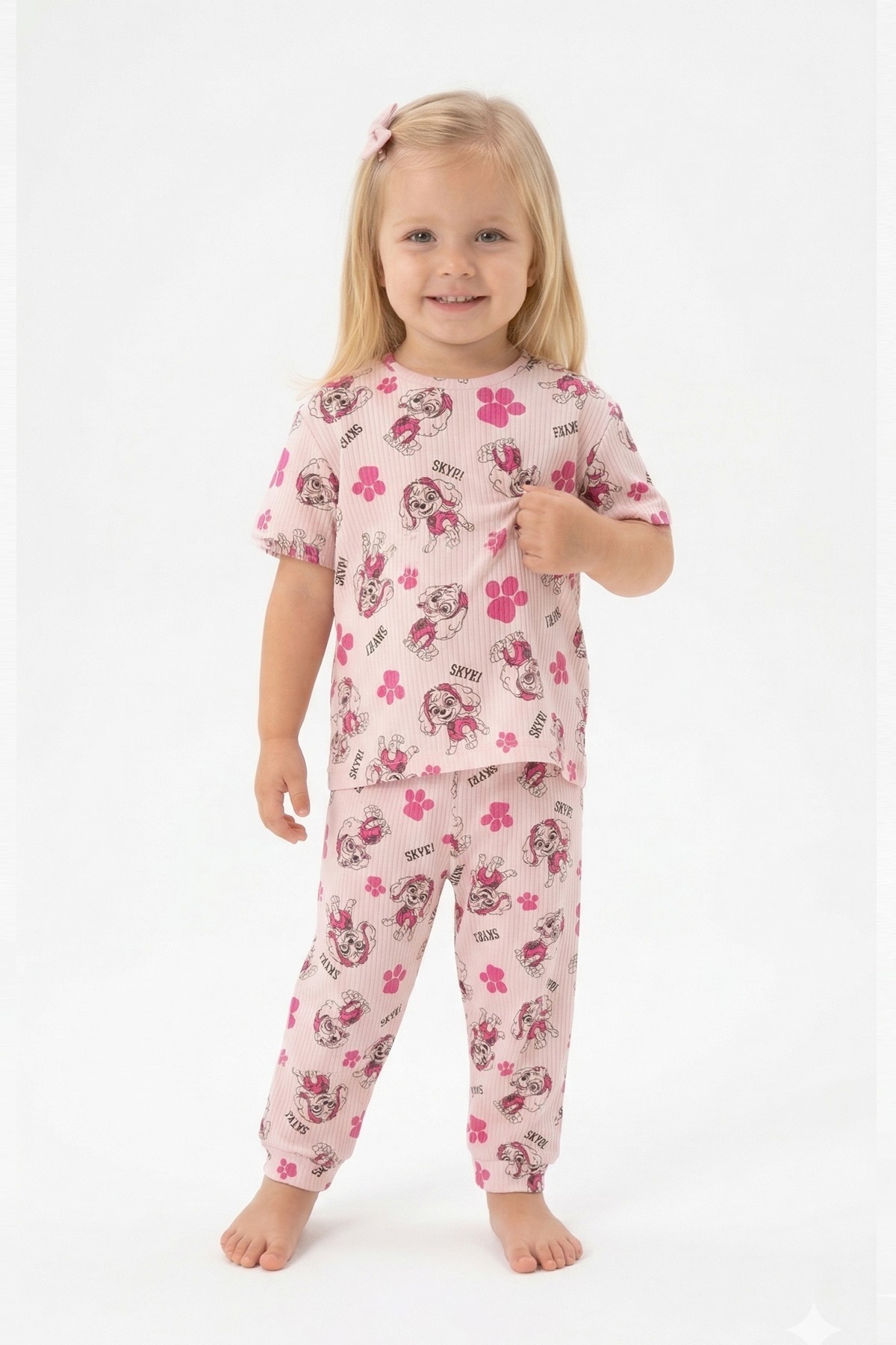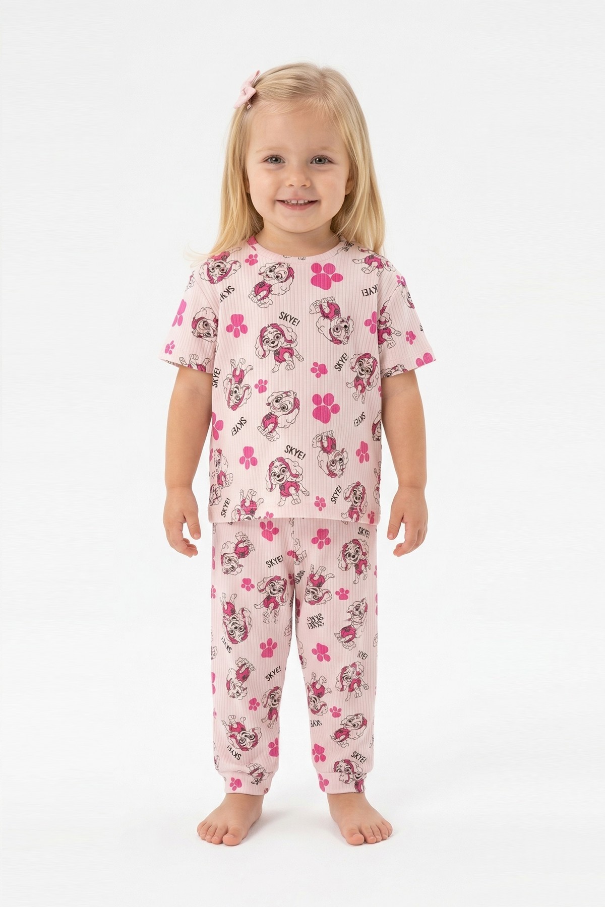 Bebek Köpek Figürlü ve Pati Desenli %100 Pamuk İnterlok Kumaş Kısa Kollu Pijama Takımı
