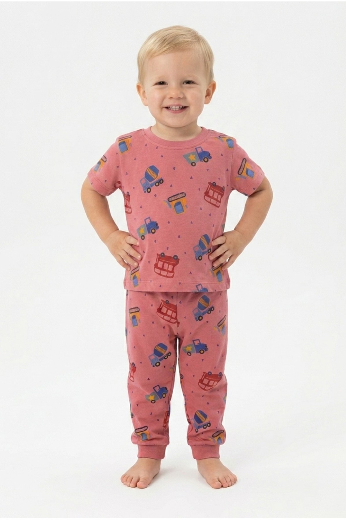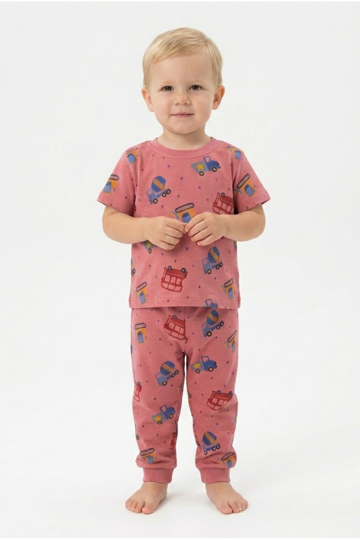 Erkek Bebek Araba Desenli %100 Pamuk Reaktif Boyalı Süprem Kumaş Kısa Kollu Pijama Takımı