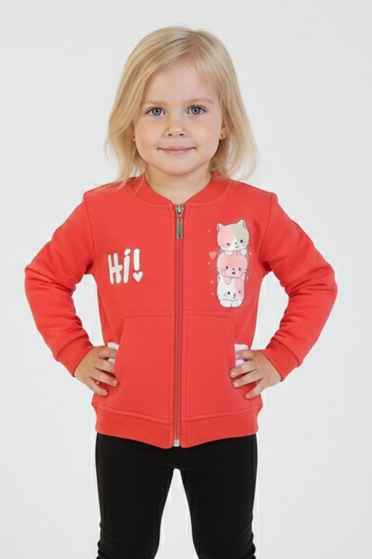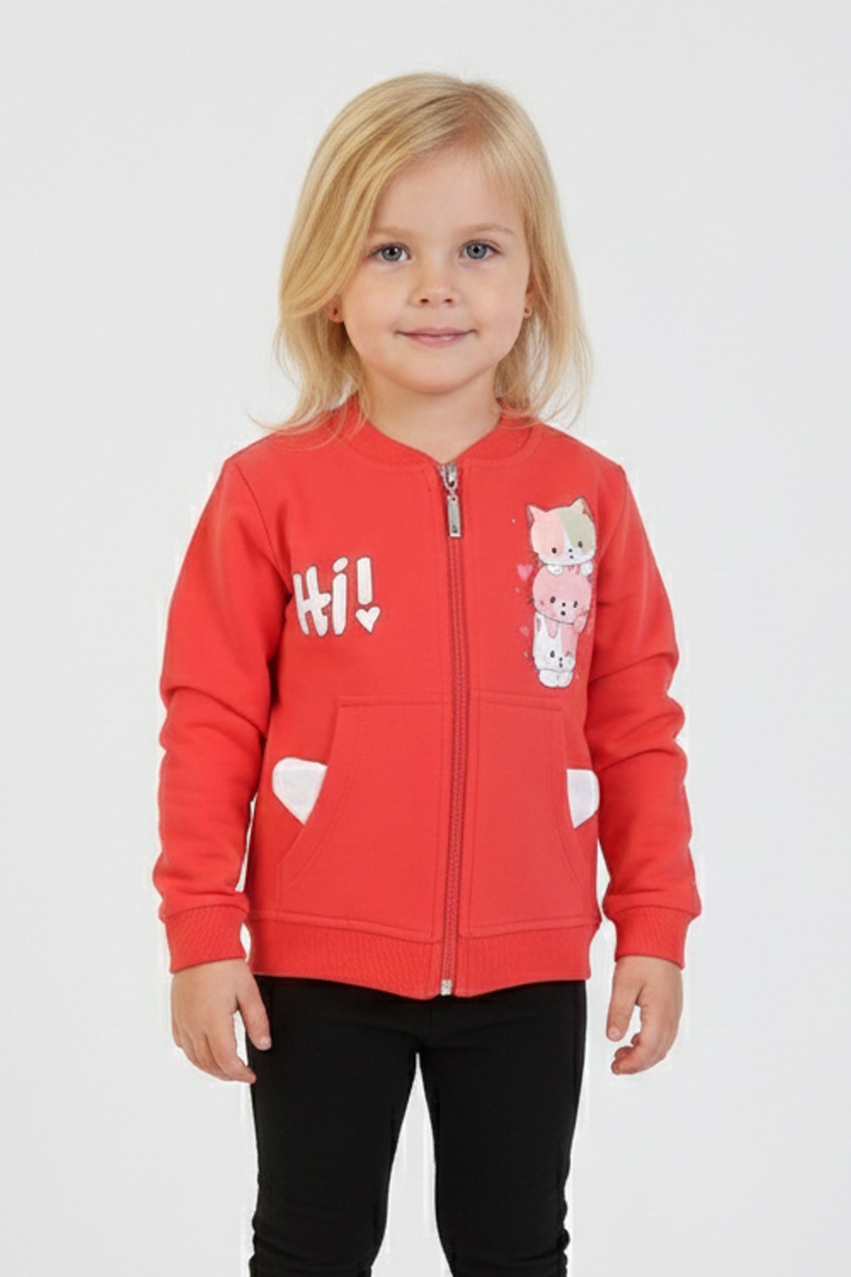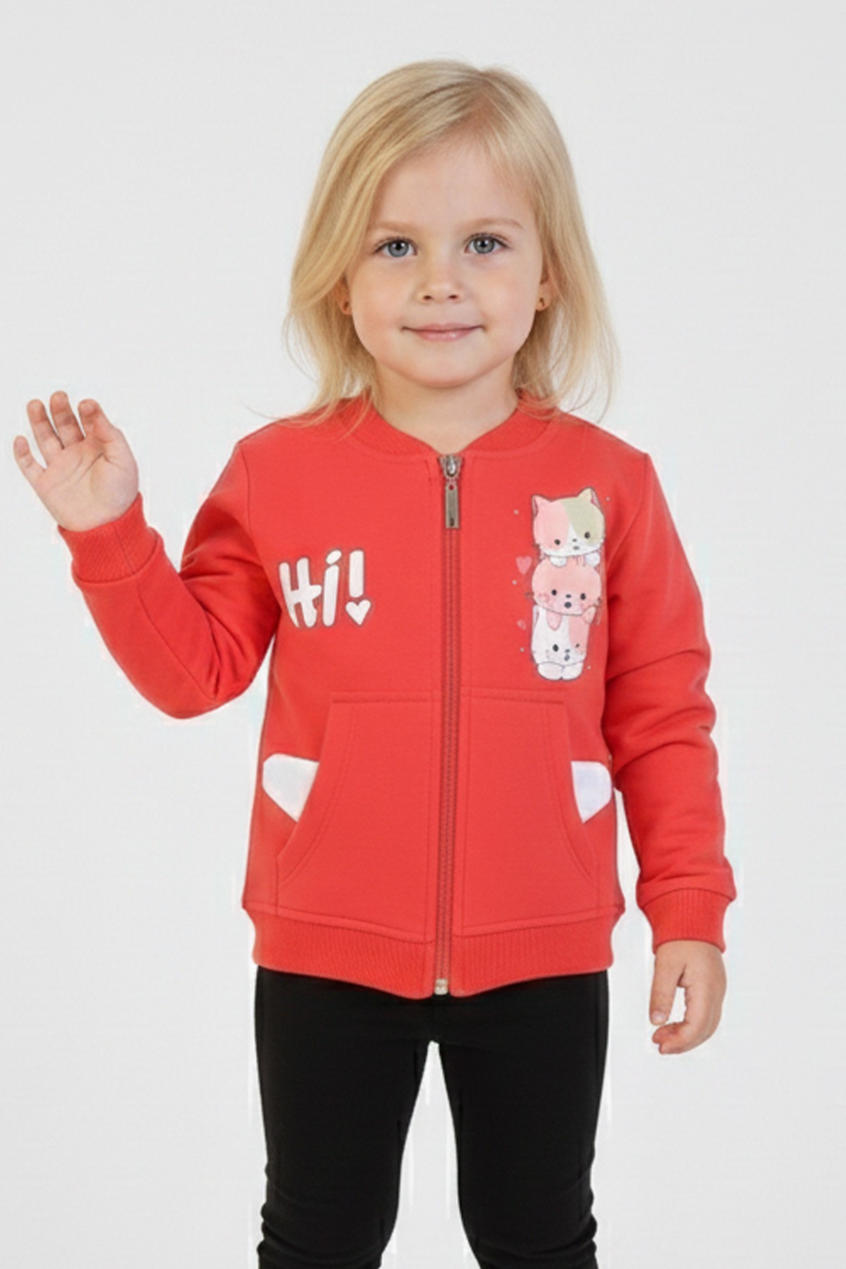 İki İplik Fırçalı Kumaş Kulaklı Cepli Kedi Baskılı Günlük Kullanım Bebe Hırka
