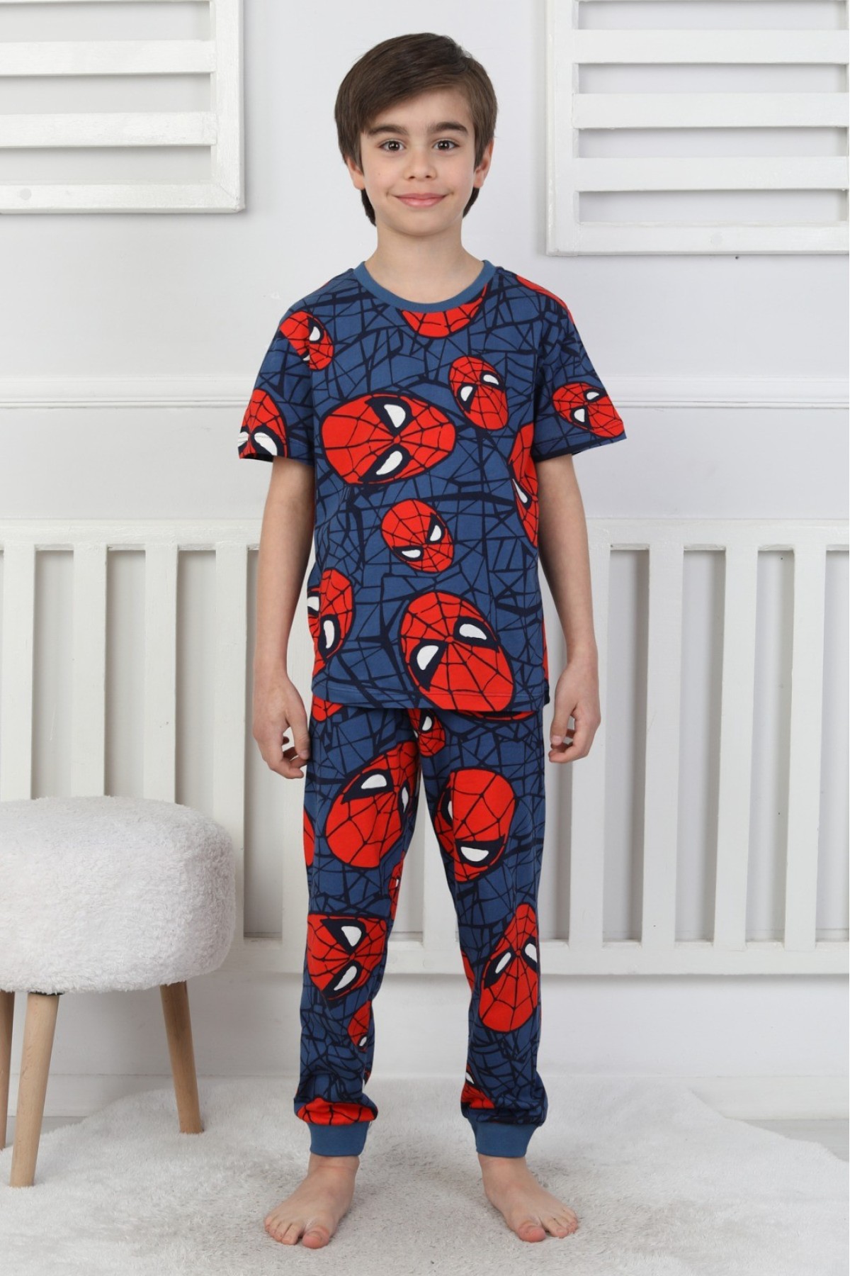 Erkek Çocuk Örümcek Adam Desenli %100 Pamuk Süprem Kumaş Kısa Kollu Pijama Takımı