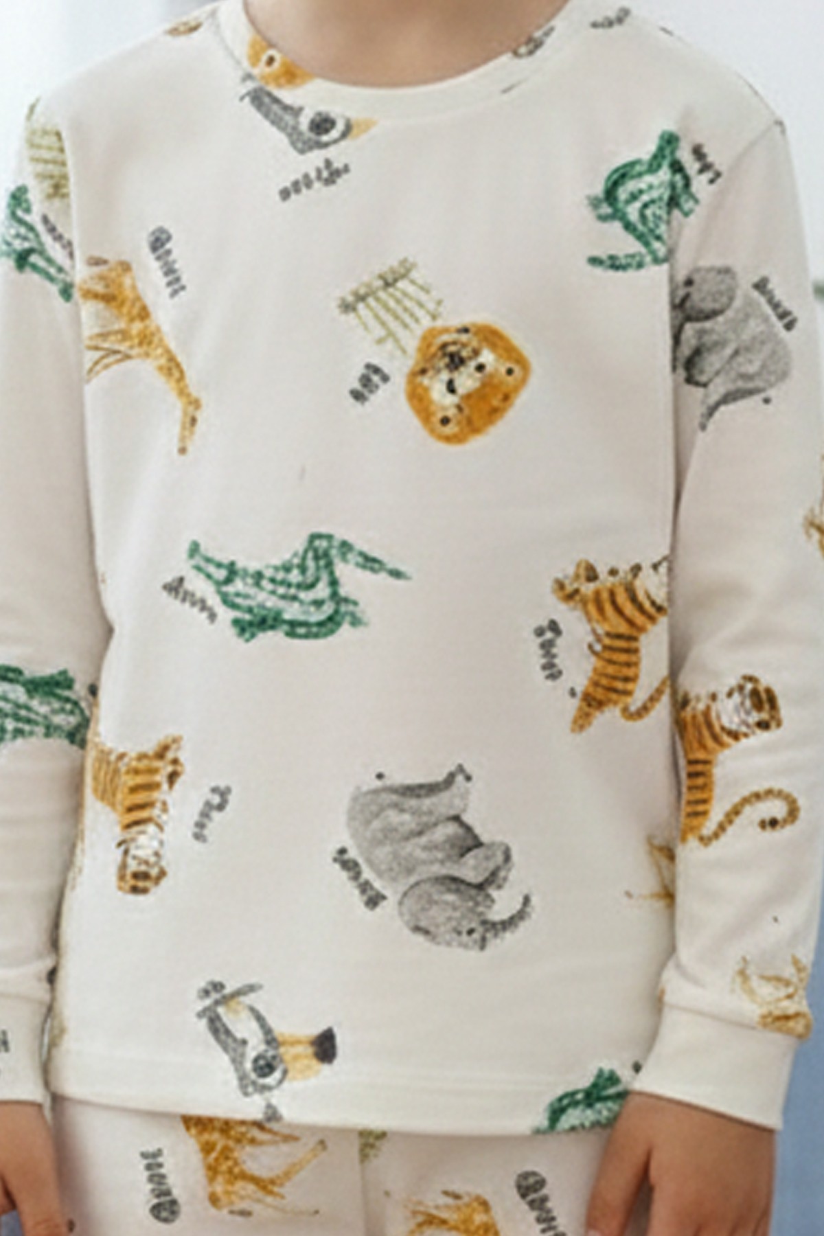 Garson Erkek Çocuk Safari Hayvan Desenli %100 Pamuk Reaktif Boyalı İnterlok Kumaş Uzun Kollu Pijama Takımı