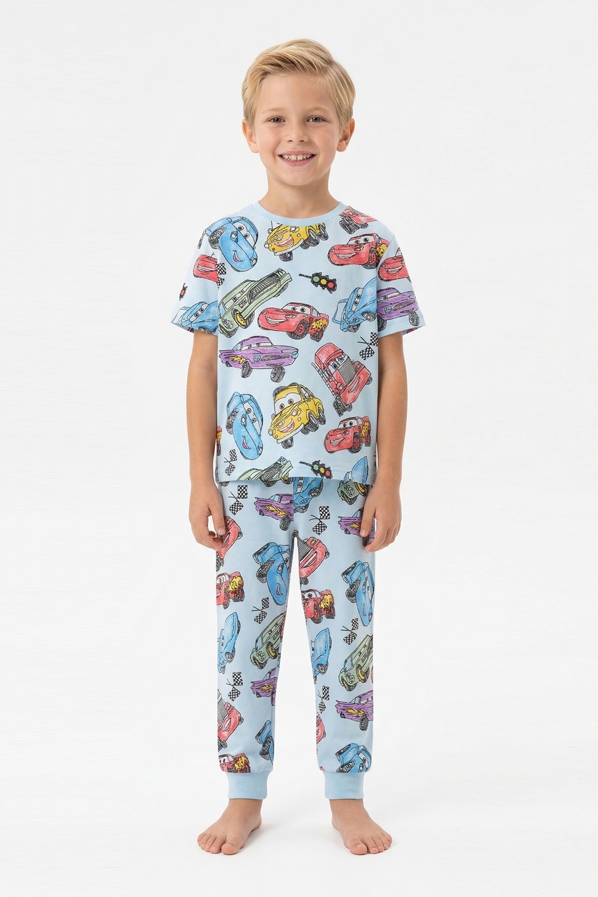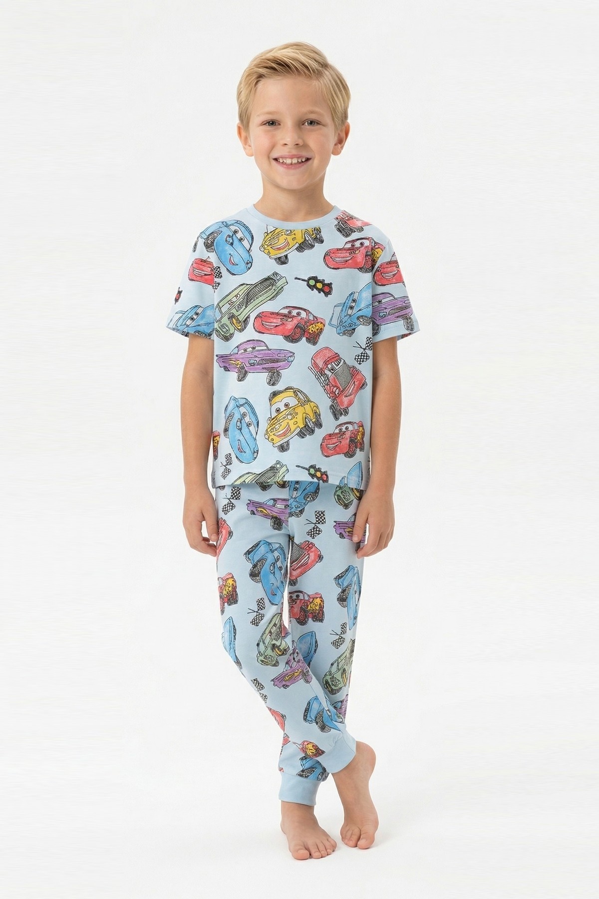 Erkek Çocuk Araba Baskılı %100 Pamuk Reaktif Boyama Süprem Pijama Takımı