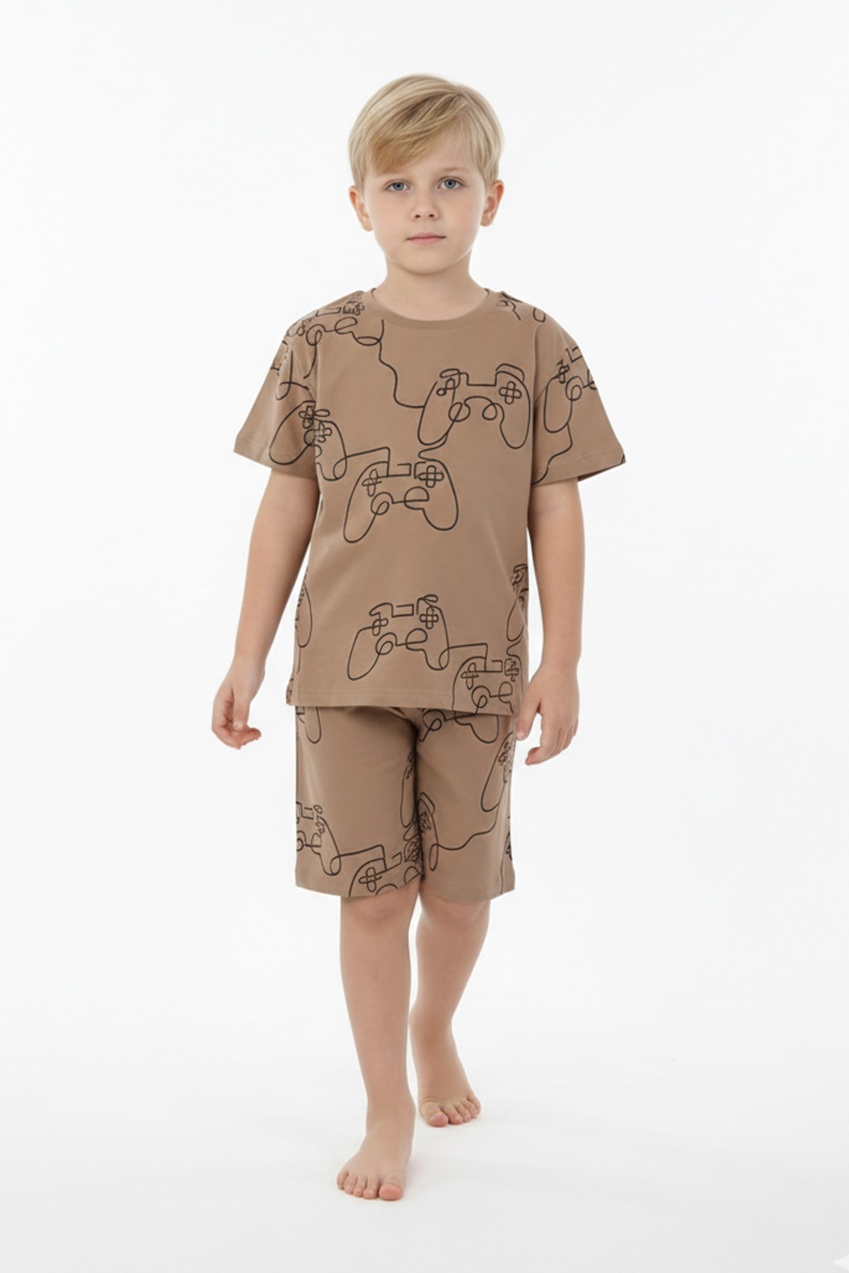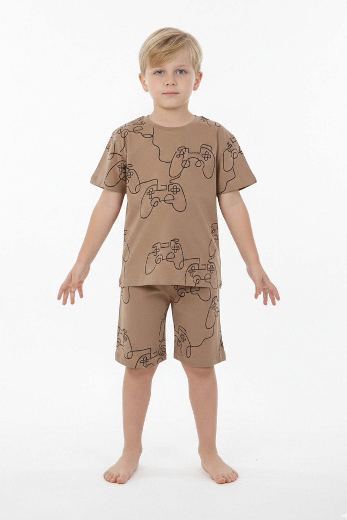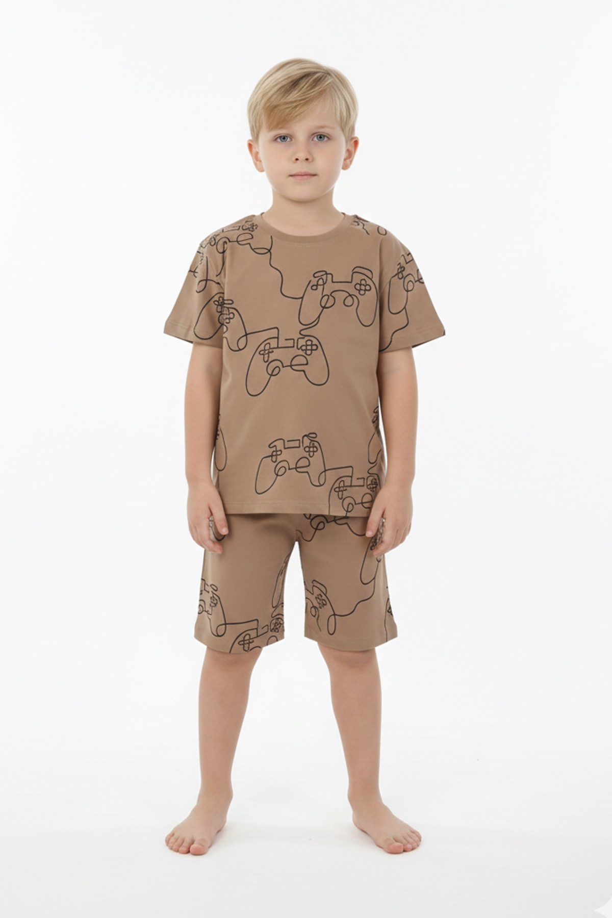 Erkek Çocuk Oyun Konsolu ve Joystick Baskılı %100 Pamuk Reaktif Boyama Süprem Pijama Takımı