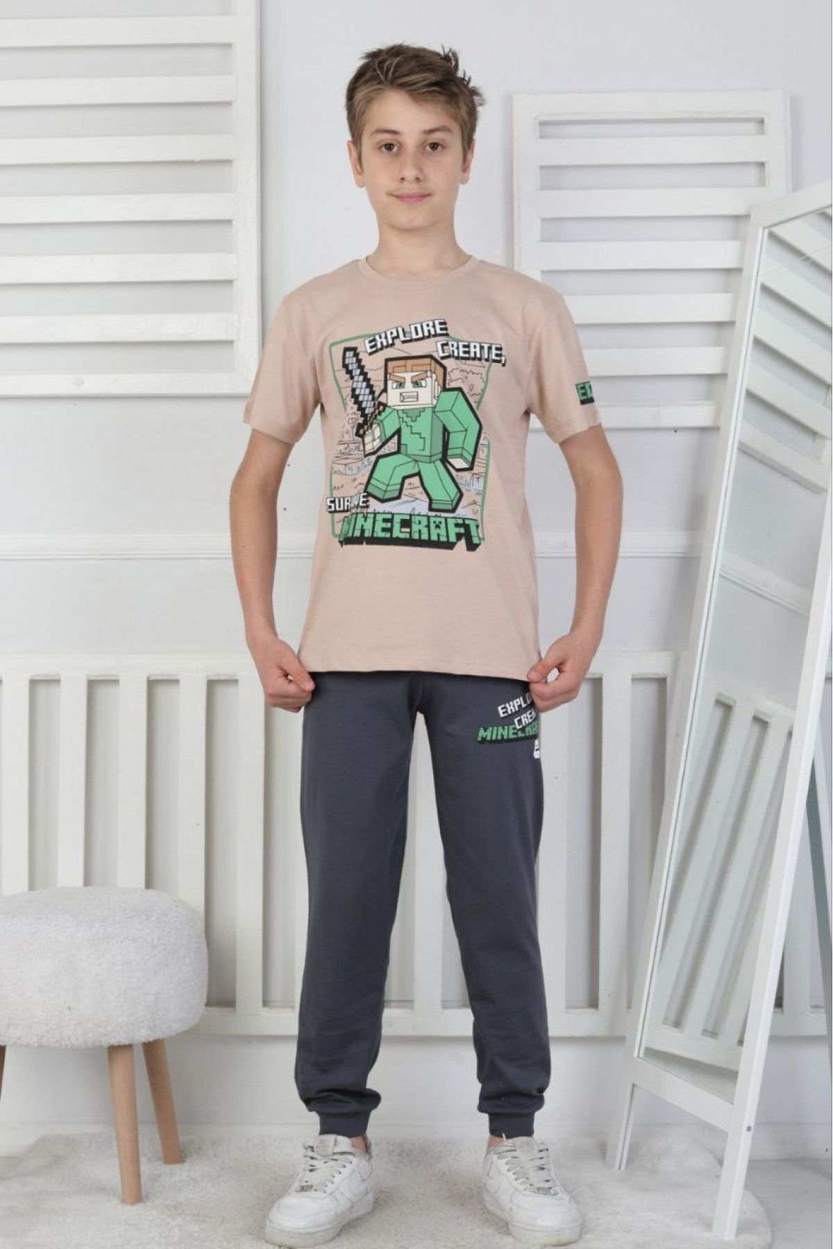 Garson Erkek Çocuk Baskılı %100 Pamuk Reaktif Boyama Süprem Pijama Takımı