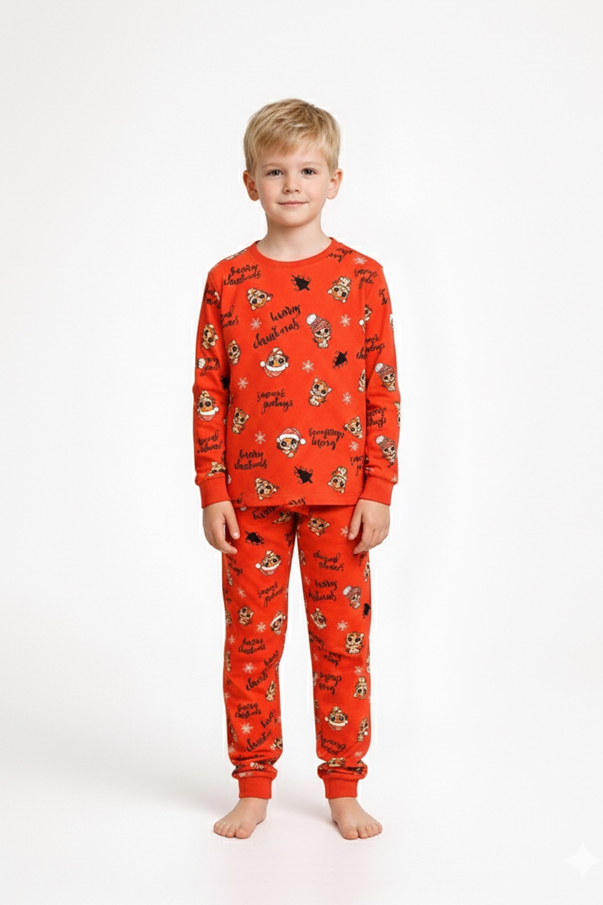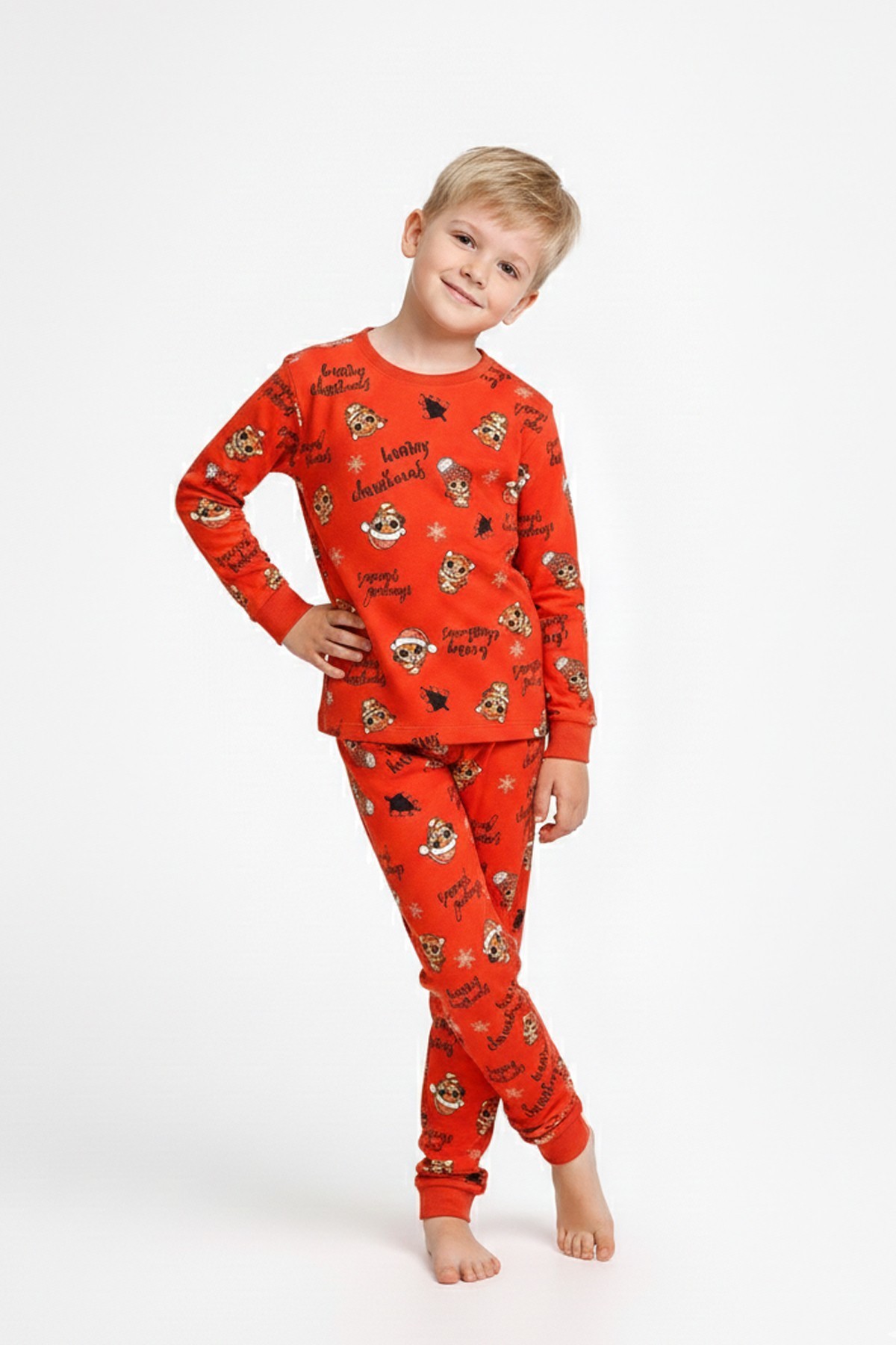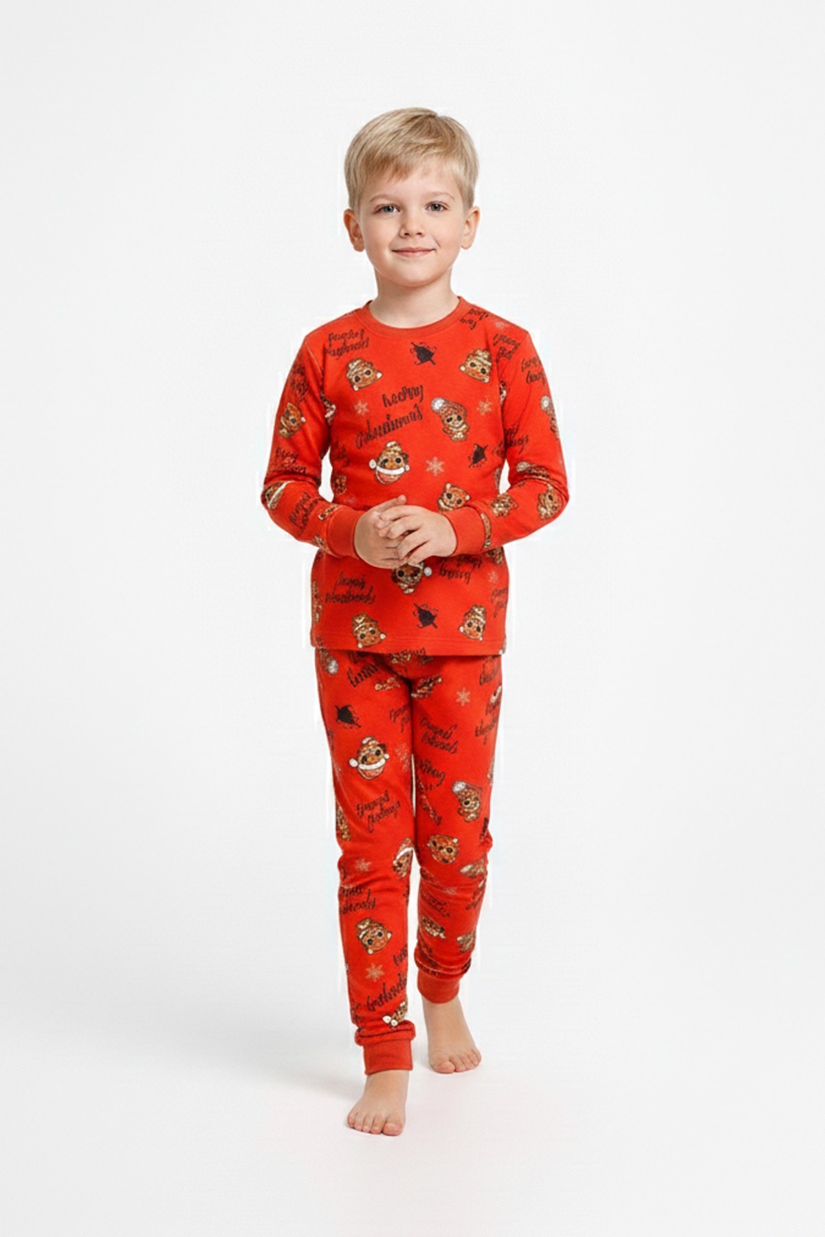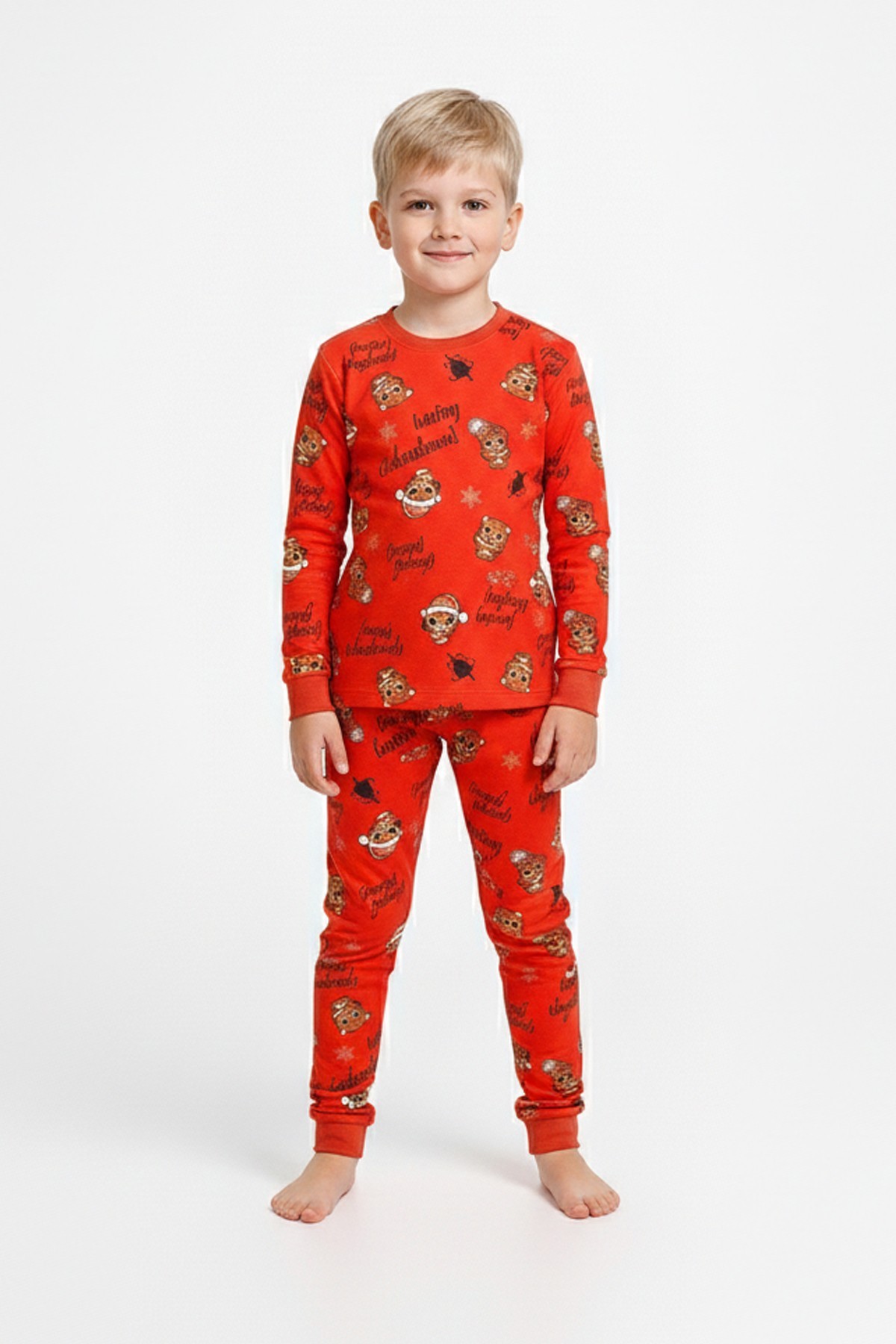 Erkek Çocuk Mutlu Yıllar Temalı %100 Pamuk Reaktif Boyalı Süprem Kumaş Uzun Kollu Pijama Takımı