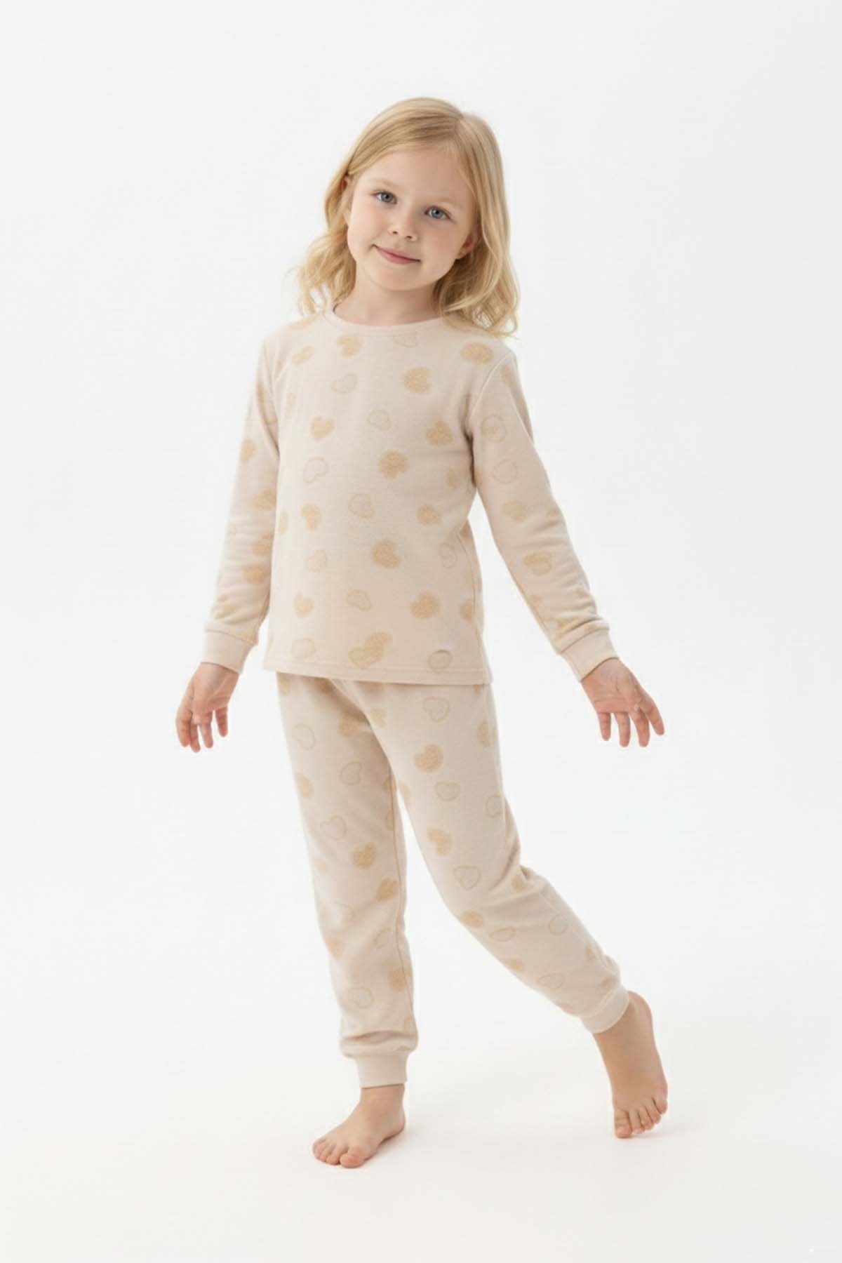 Kız Çocuk Desenli %100 Pamuk Reaktif Boyalı Süprem Kumaş Uzun Kollu Pijama Takımı