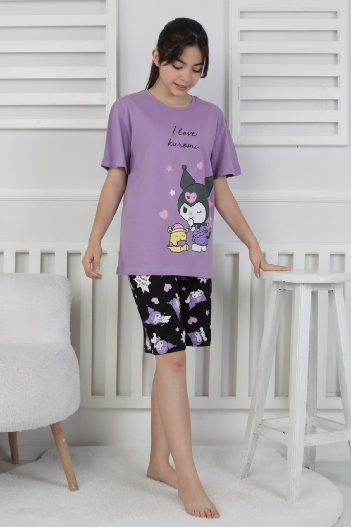 Garson Kız Çocuk Baskılı %100 Pamuk Reaktif Boyalı Süprem Kumaş Kısa Kollu Şortlu Pijama Takımı