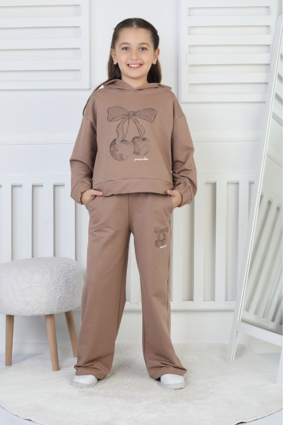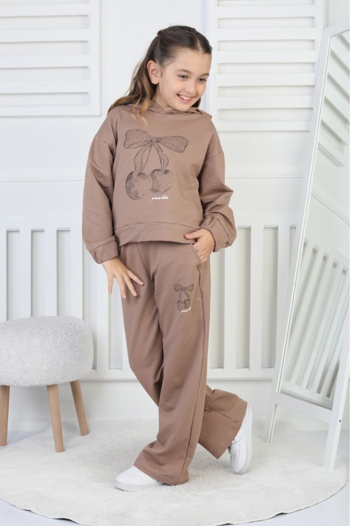 İki İplik Kapüşonlu Baskılı Kız Çocuk Takım