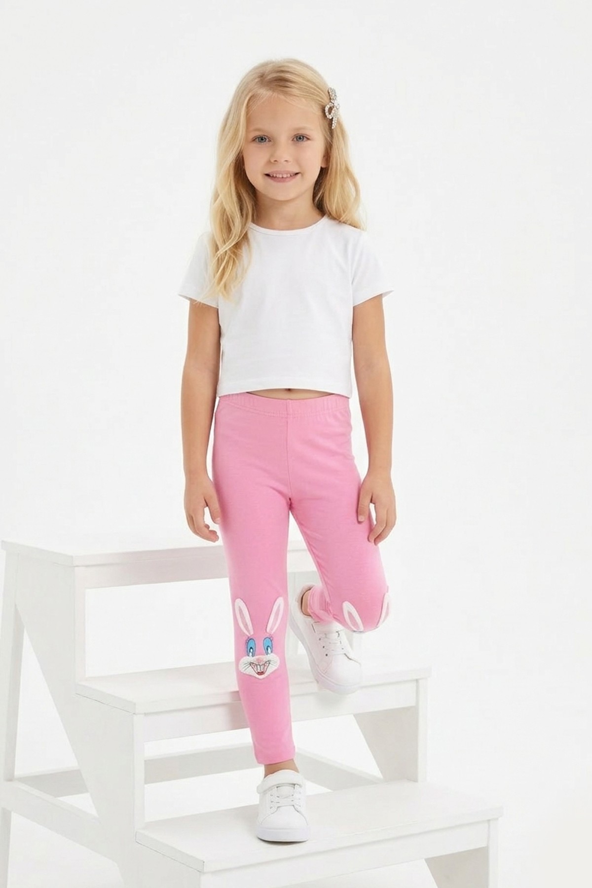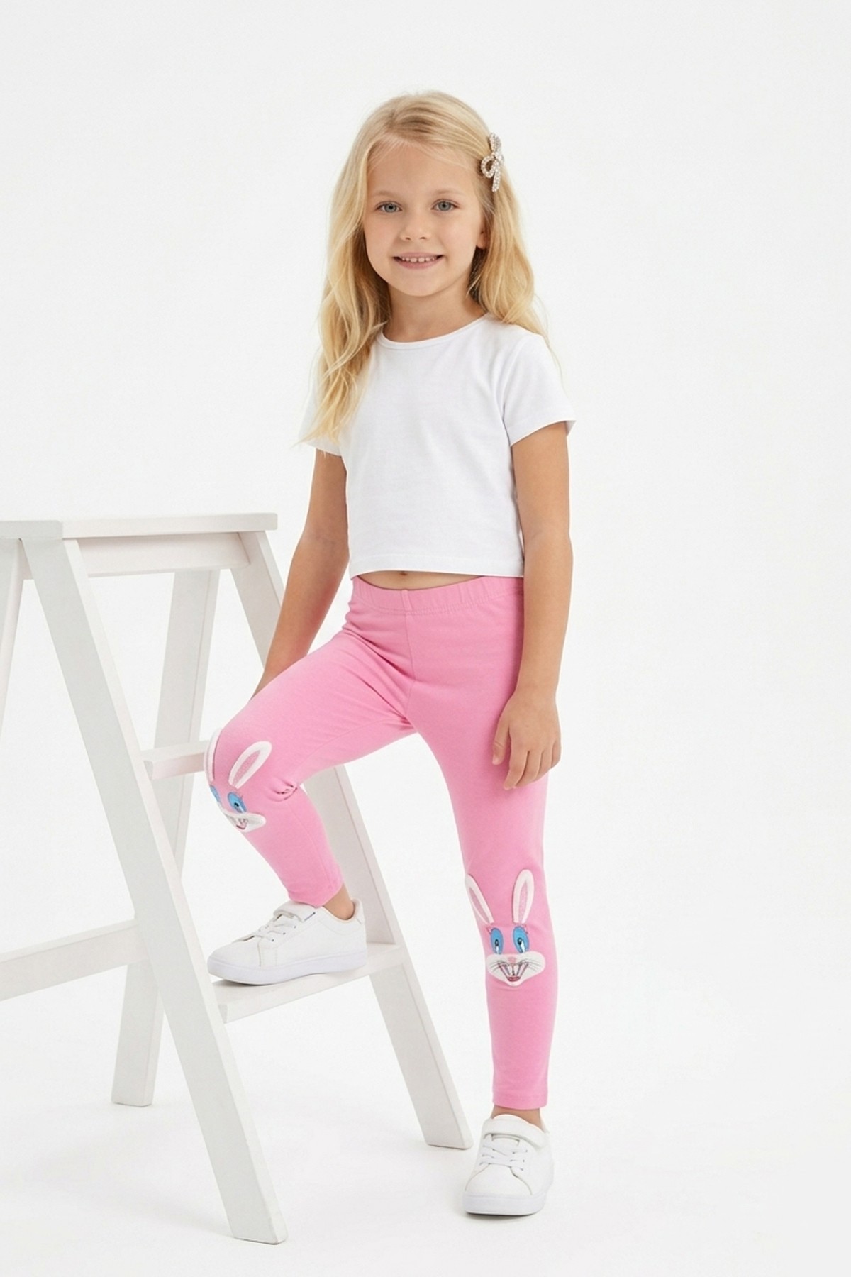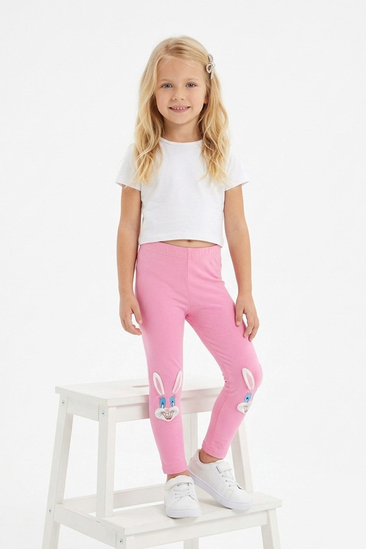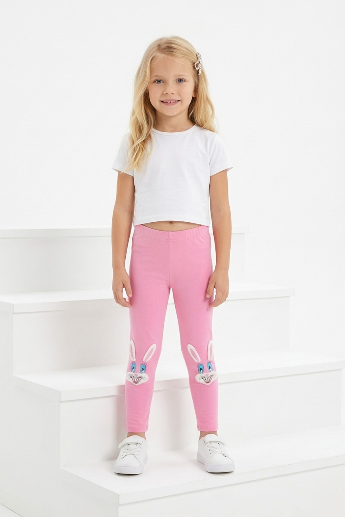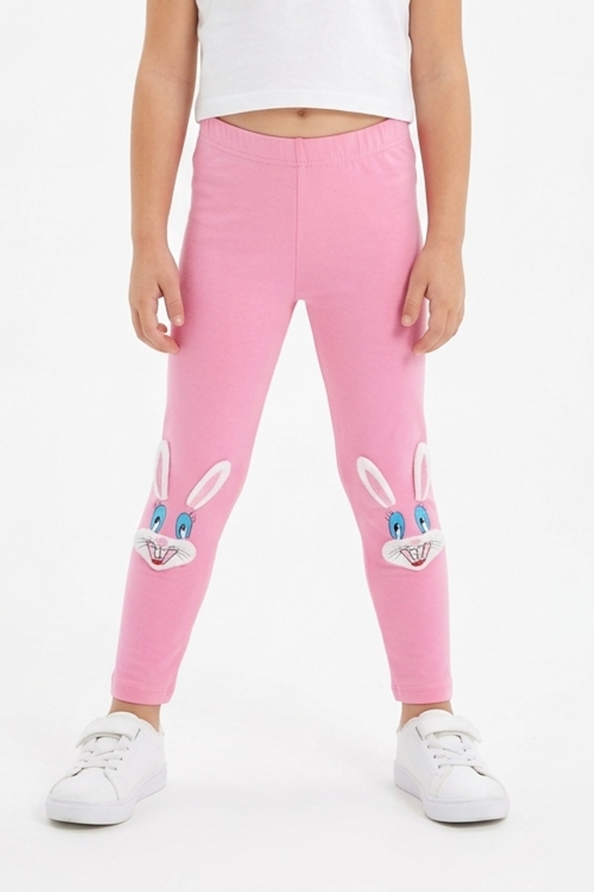Kız Çocuk Tavşan Nakışlı Fiyonk Detaylı Esnek Pamuklu Tayt