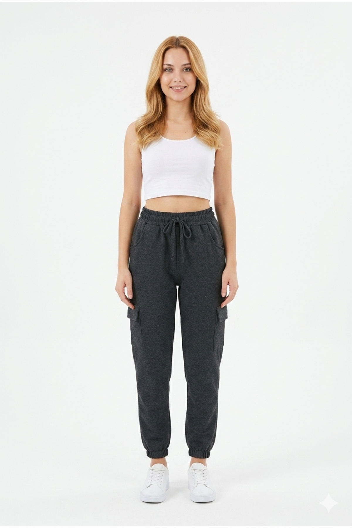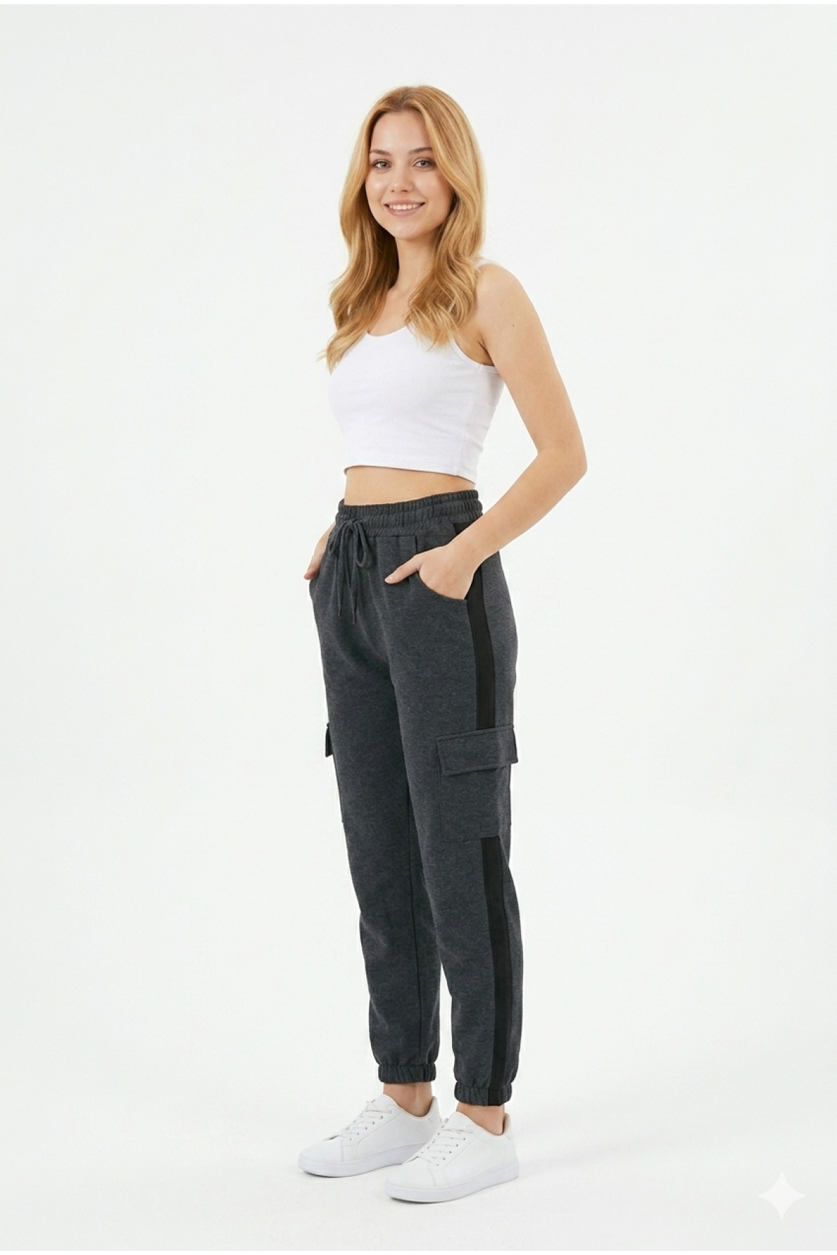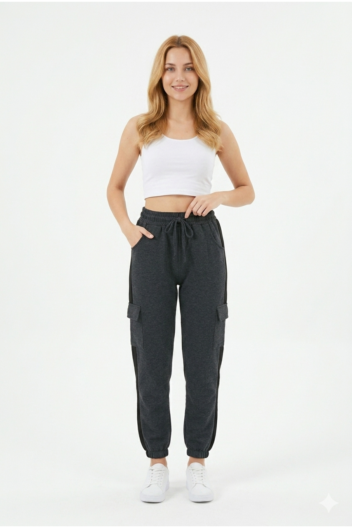 Kadın Şeritli Kargo Cepli Rahat Kesim Lastik Paçalı Günlük Spor Alt Eşofman