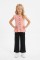 Kız Çocuk Delikli Düğmeli Kısa Kollu Bluz Ve İspanyol Paça Pantolon Takım