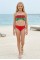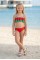 Kız Çocuk Polyester + Elastan Karpuz Desenli Çizgili Askılı ve Yanları Bağlamalı Şık Tasarım İkili Mayo