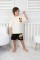 Arkası Baskılı Tişört Ve Şortlu Krem Takım